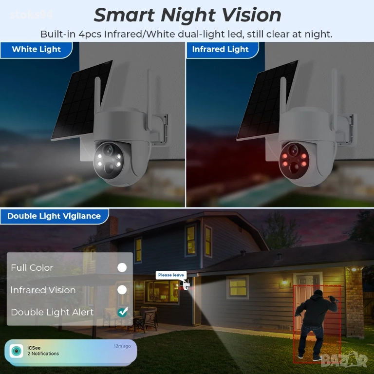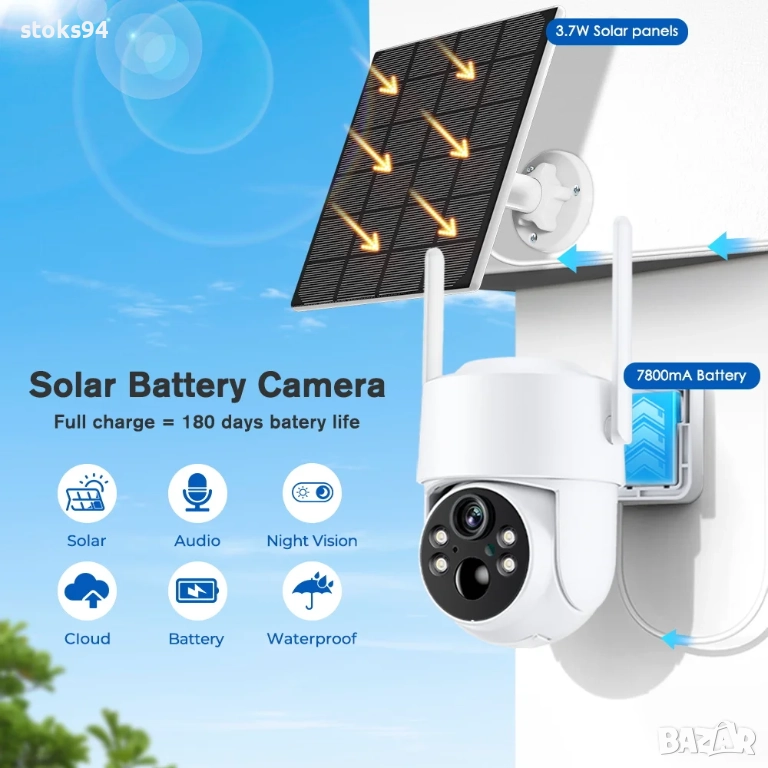 соларни камери, камера със соларен панел, соларна WiFi камера, соларна 4G камера, безжична камера за двор, автономна камера за видеонаблюдение, външна камера с батерия, IP камера с нощно виждане, WiFi камера за вила, защита на имот, камера за строителен обект, камера за пчелин, камера с PIR детектор, PTZ solarnа камера, камера без ток, камера без кабели, камера със запис на карта, интелигентно видеонаблюдение, мобилно видеонаблюдение, цветно нощно виждане, камера с двупосочно аудио, камера със софтуер iCSee, наблюдение през телефон, наблюдение през приложение.