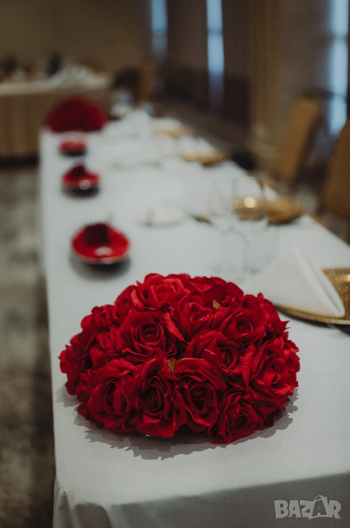 Продава се и останалата част от сватбената декорация на тема рози.