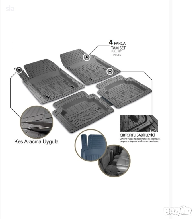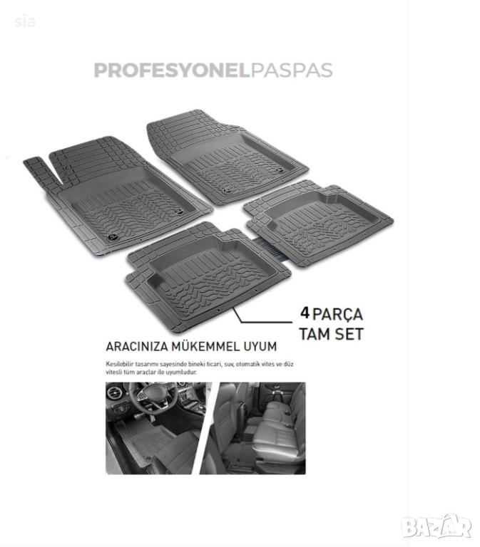 Универсални гумени стелки подходящи за всички превозни средства. Направени от издръжлив на износване материал, без неприятна миризма и с опция да се изрязват спрямо нуждите на вашия автомобил. Размер на предните стелки 50/71см. Размер на задните 50/43см.