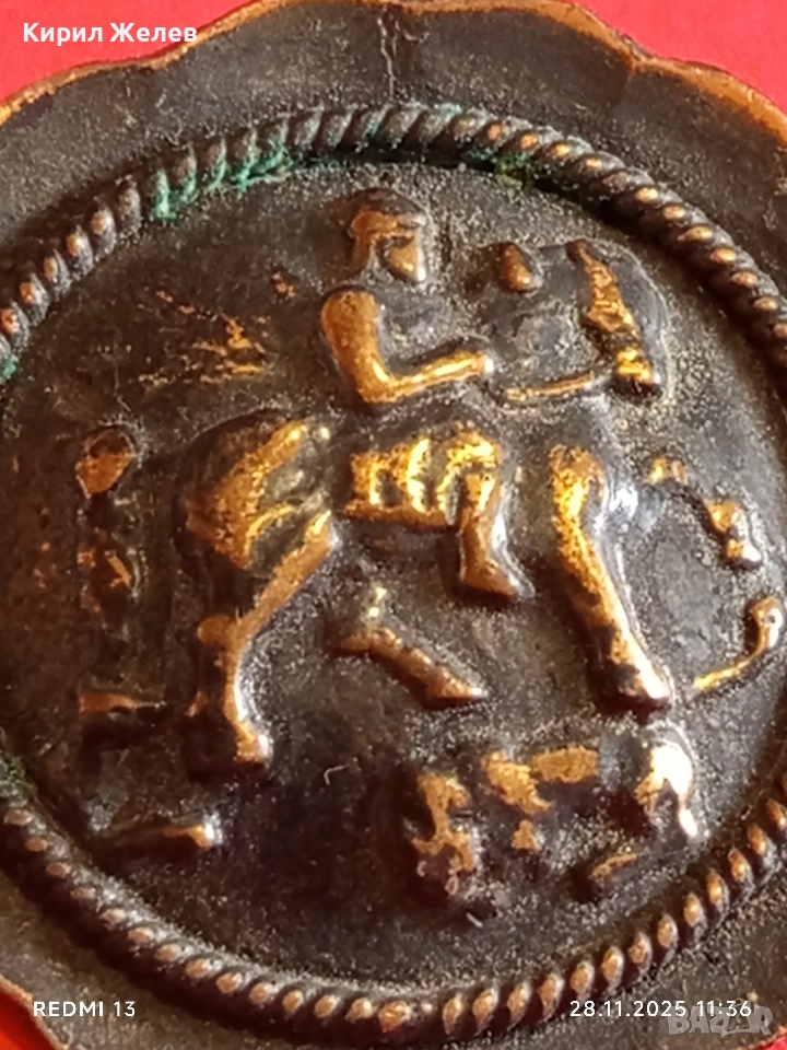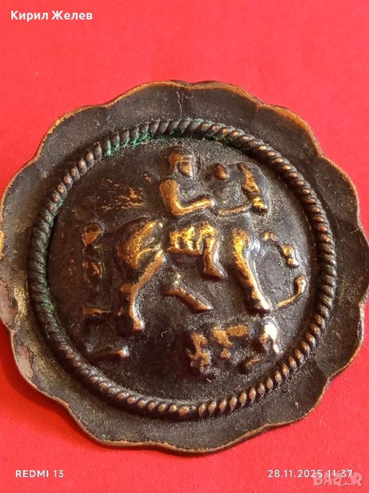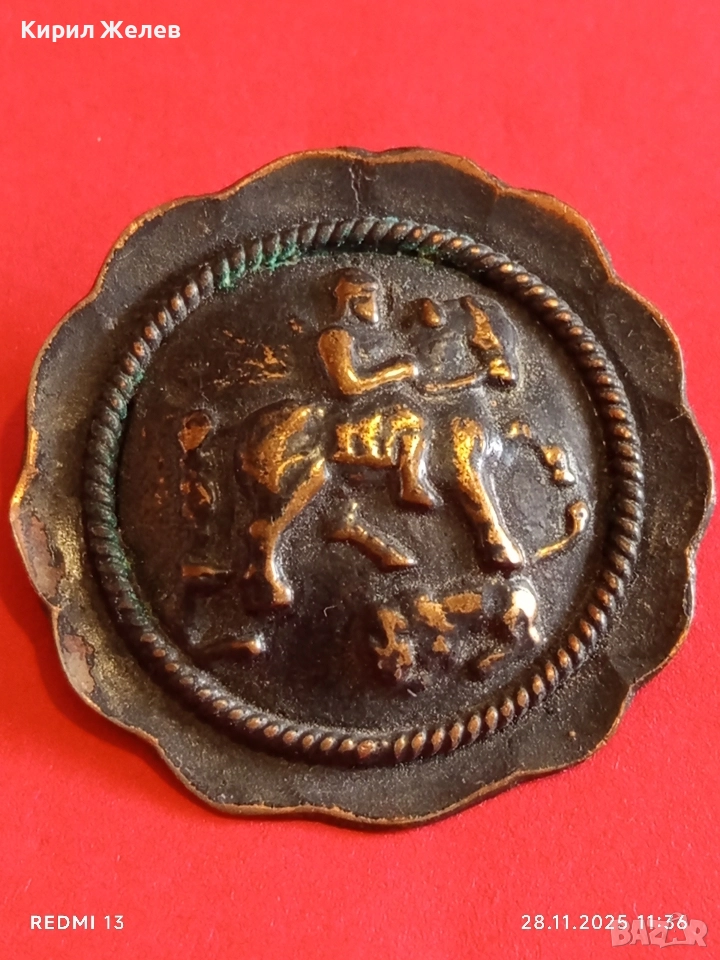 Винтидж медна брошка КОННИК ретро АРТ бижу 56661