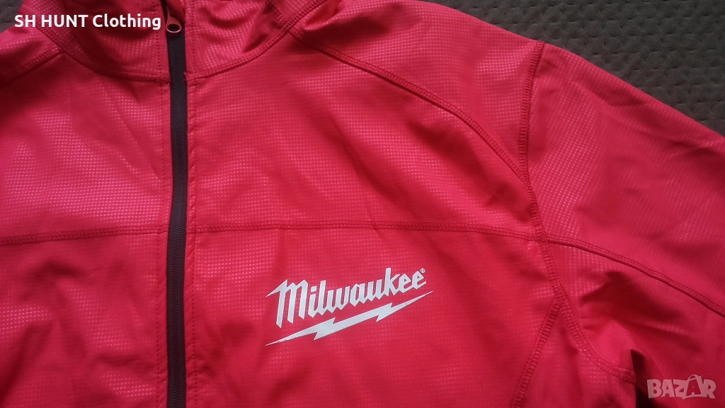 Марка: Milwaukee Softshell Work Jacket - работна горница вятърно устойчива Размер: XL - ширина под мишниците 66 см , дължина 86 см заедно с яката , 77 см без яката. Дължина на ръкава от рамото до края 65 см , от мишницата до края 55 см.