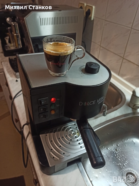 Кафе машина Долче вита с ръкохватка крема диск работи перфектно и прави супер кафе с каймак