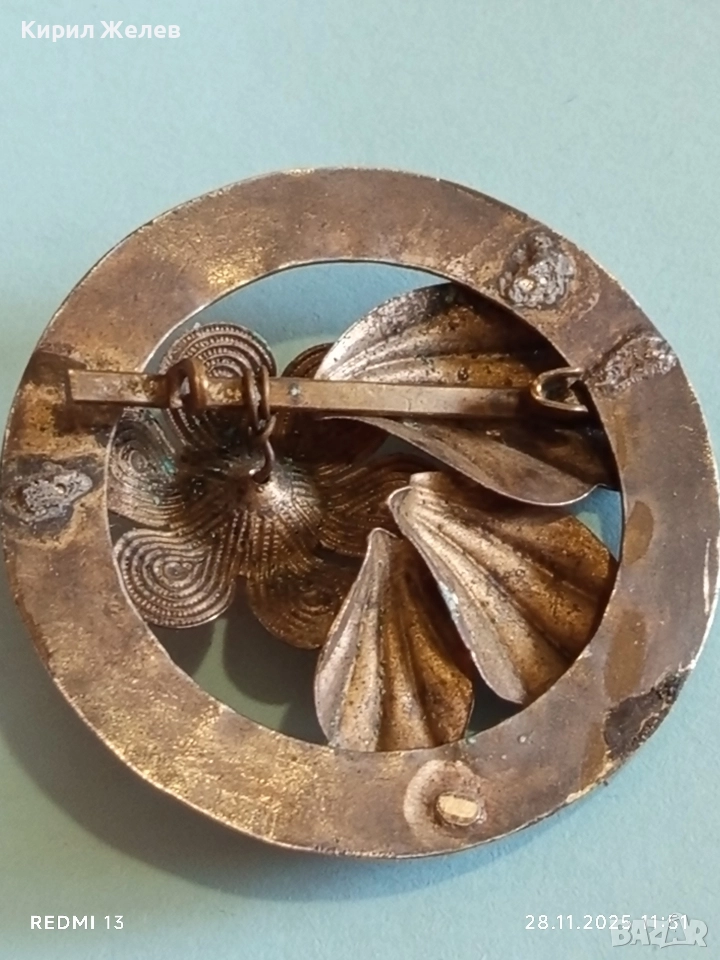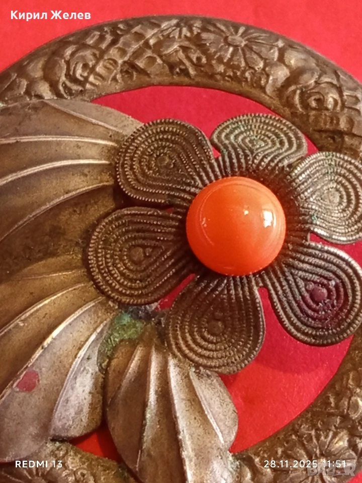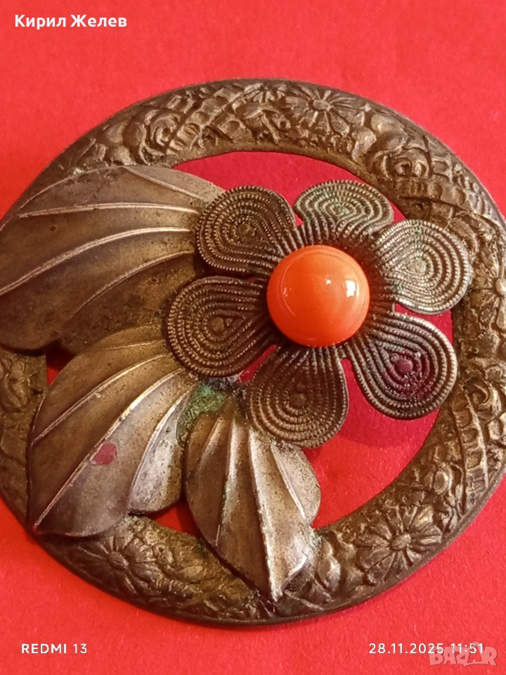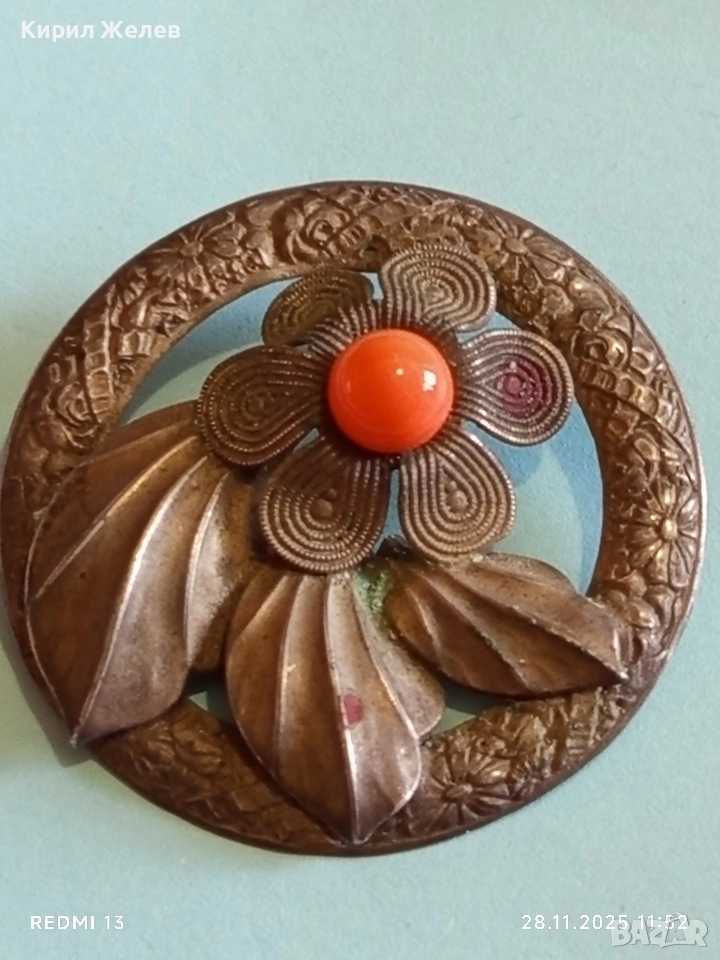 Ретро брошка с флорален мотив филигранни венчелистчета и ярко оранжево мъниста 48877