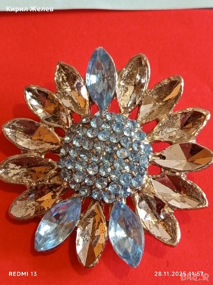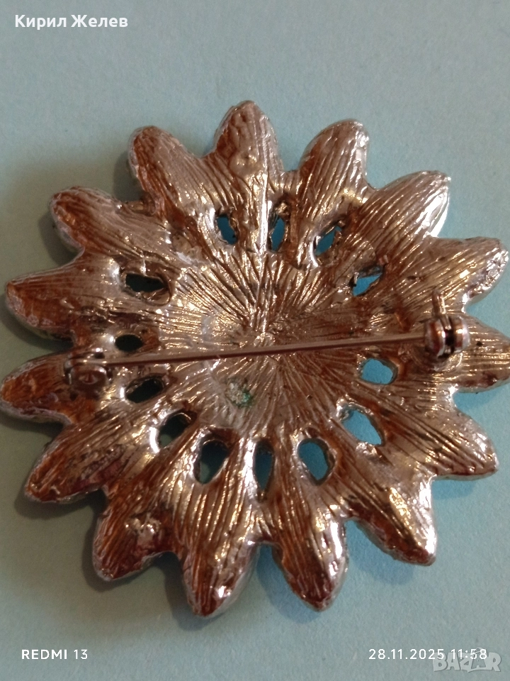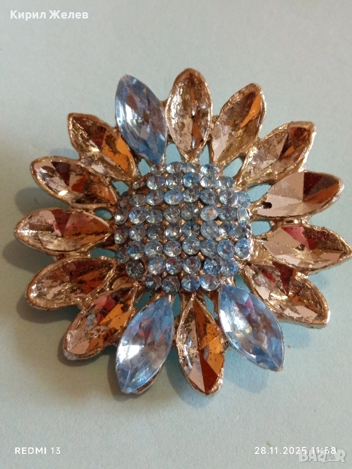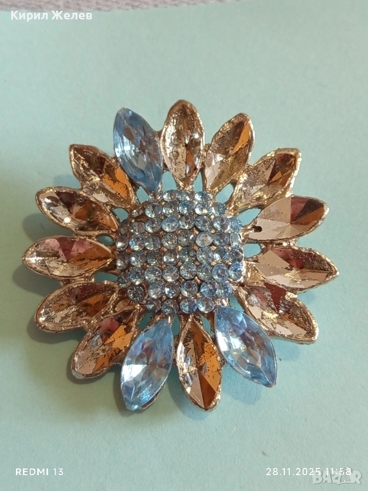 Брошка с форма на цвете със тюркоазени камъни 34514