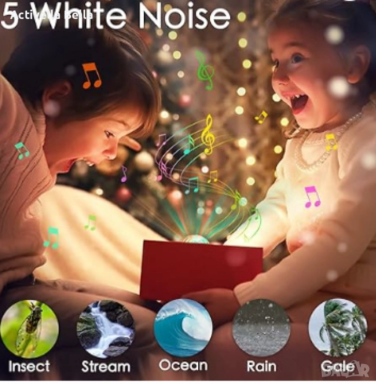 Функции: Прожекционни светлини, включващи релаксиращи природни звуци: Бял шум ,Чуруликане на насекоми и птици, Течаща вода ,Вълни ,Бял шум на вентилатор и гръмотевица.