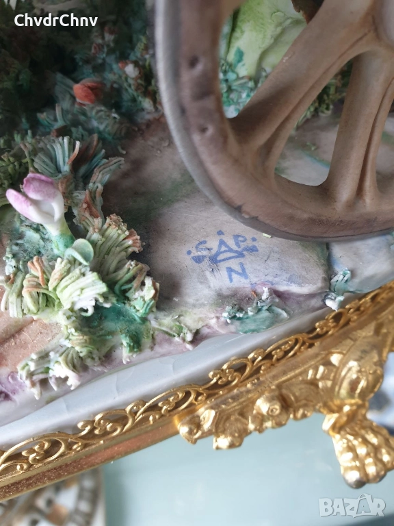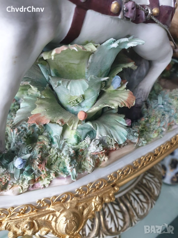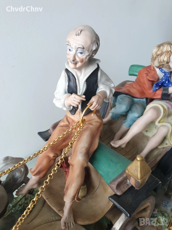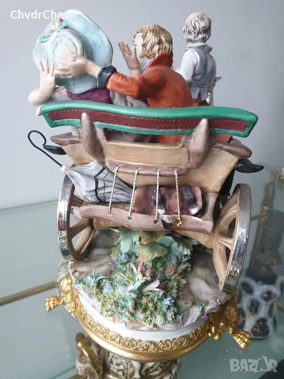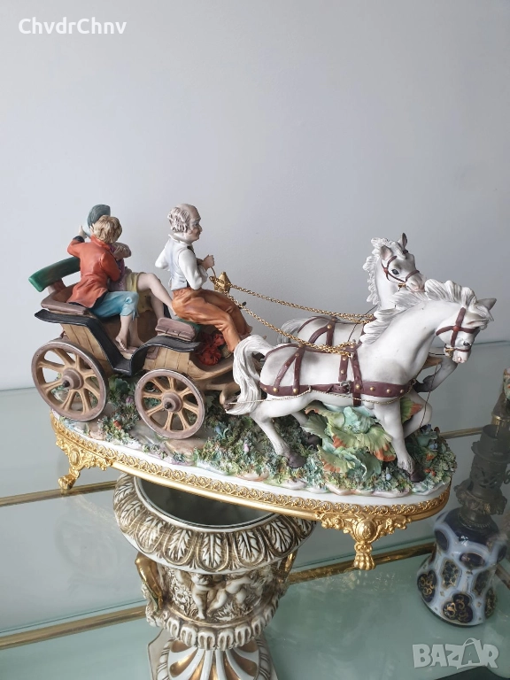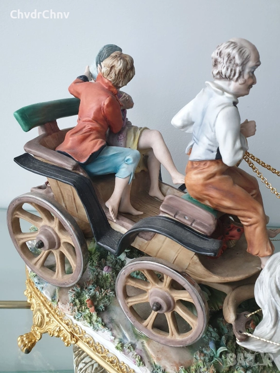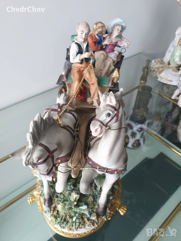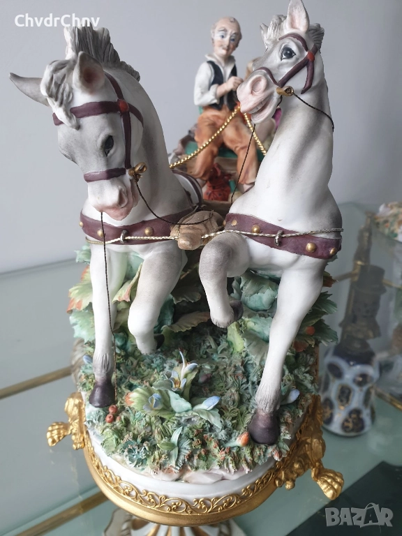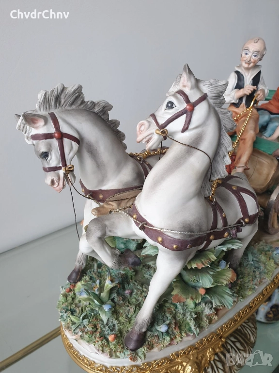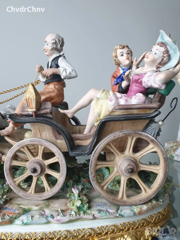 Capodimonte скулптура 45см/Каподимонте стара голяма порцеланова фигурална композиция/карета с коне