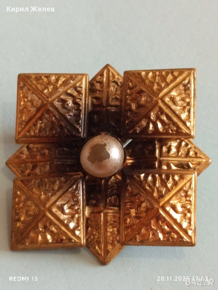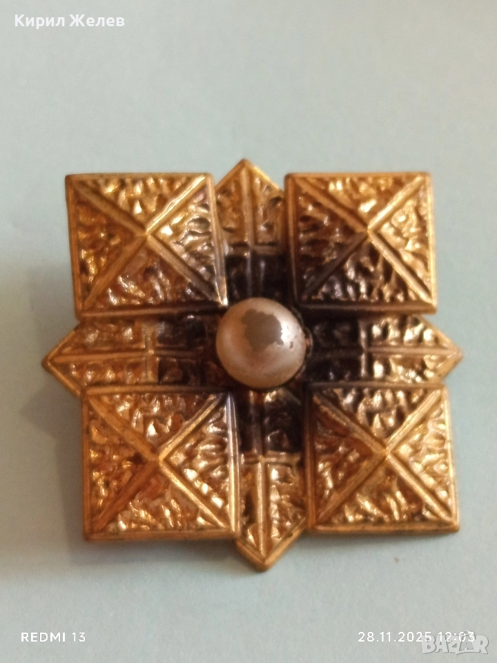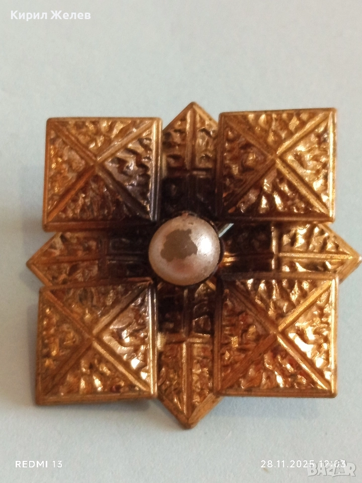 Винтидж брошка с центална перла и геометрични фигури 33962