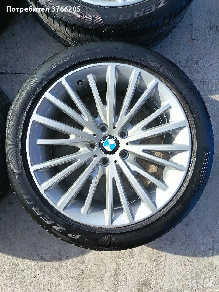 Джанти са оригинални, спорт пакет, в перфектно състояние. Без кривини и заварки. Параметри: Предни- 8j et36 Задни- 8,5j et47 Централен отвор 72,6мм. Гумите са Pirelli P ZERO с хубав грайфер. Предни- 245/45r19 Задни- 275/40r19 Свалени са от f10.