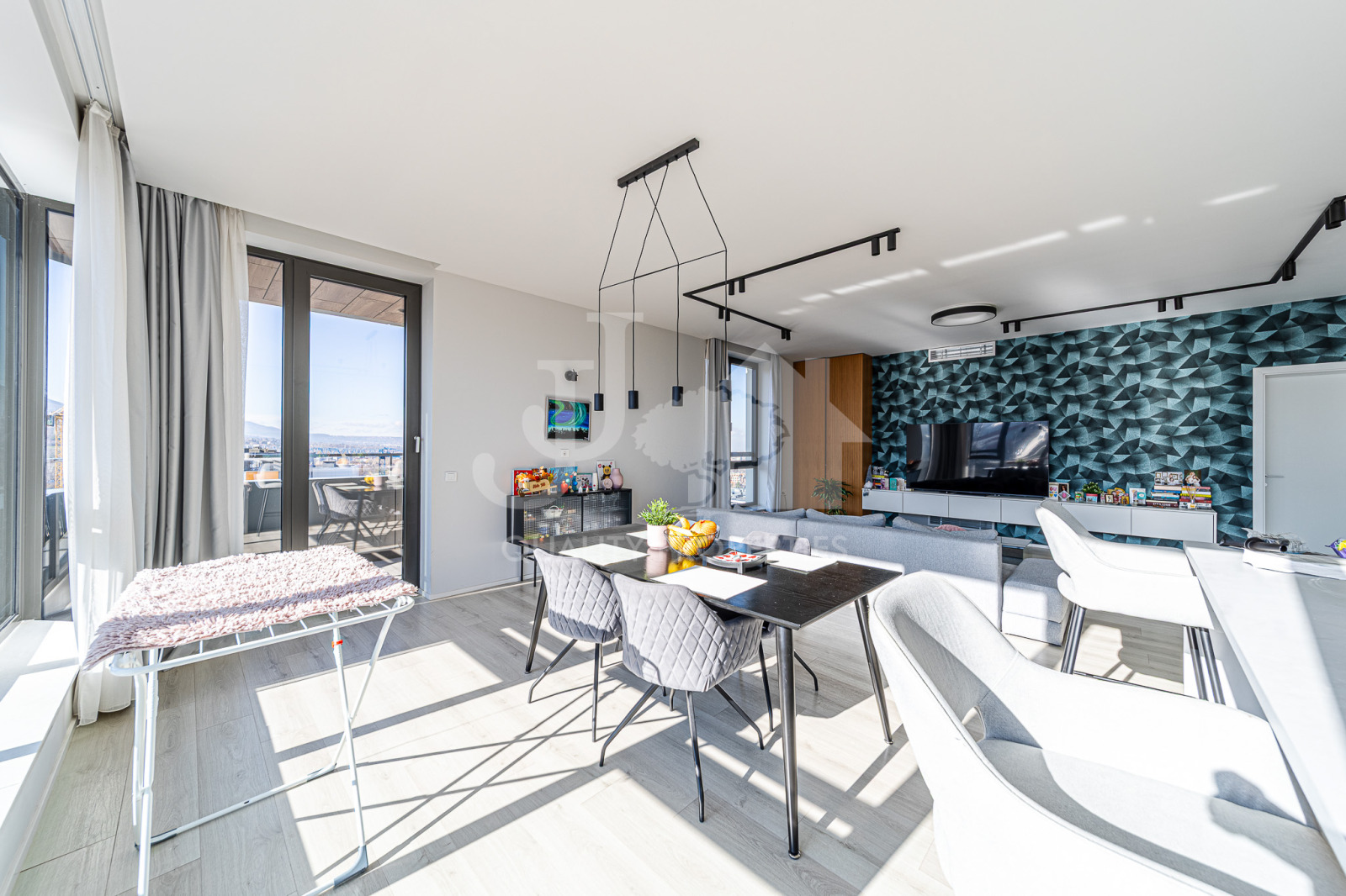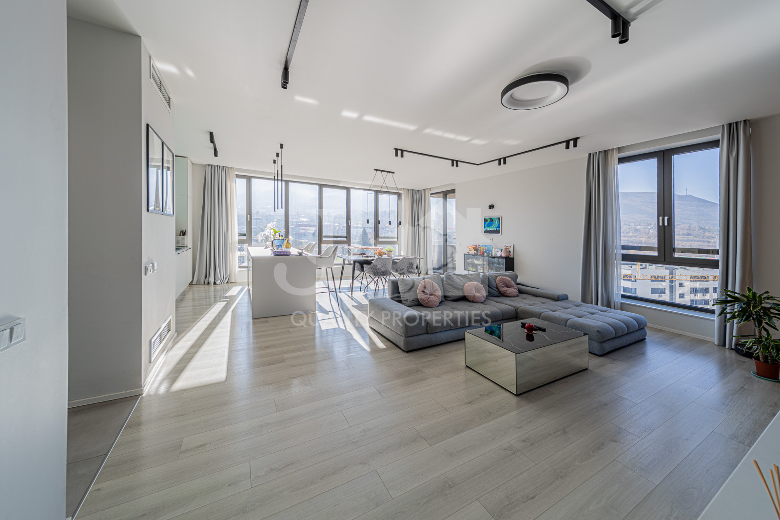 JJ Corporation предлага на Вашето внимание луксозен и напълно обзаведен тристаен апартамент, с чиста площ от 132,34 кв.м, разположен на 9-ти етаж от 15, в модерна жилищна сграда с висококачествено строителство в кв. Кръстова вада. Това е един от най-предпочитаните и динамично развиващи се квартали на София - с лесен достъп до центъра, метростанция, търговски центрове, супермаркети и зелени пространства. Районът съчетава спокойствието на жилищна среда с удобствата на модерния градски живот. Имотът впечатлява с функционално и комфортно разпределение: входно антре, където е разположено и мокрото помещение с висок клас газово котле и пералня, южен светъл и просторен хол с трапезария и елегантен кухненски бокс с остров, родителска спалня със собствени баня и тоалетна, втора самостоятелна спалня, гардеробна, втора баня с тоалетна и великолепна тераса към дневната със спиращи дъха гледки към планината. Апартаментът е напълно обзаведен с чисто нови мебели и електроуреди, подбрани с вкус и внимание към всеки детайл. Интериорът съчетава стил, светлина и изискан комфорт, което прави жилището съвършено готово за живеене. Отоплението е решено с термопомпа - гаранция за икономичност, комфорт и устойчивост, а изложението е югозапад. Таксата поддръжка е 150 евро на месец.
