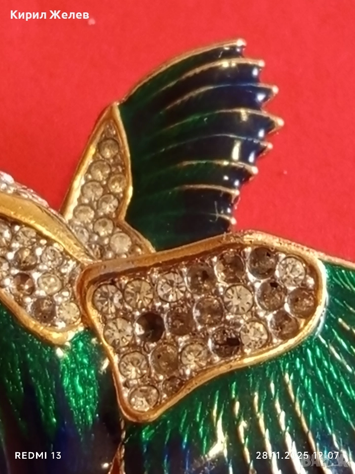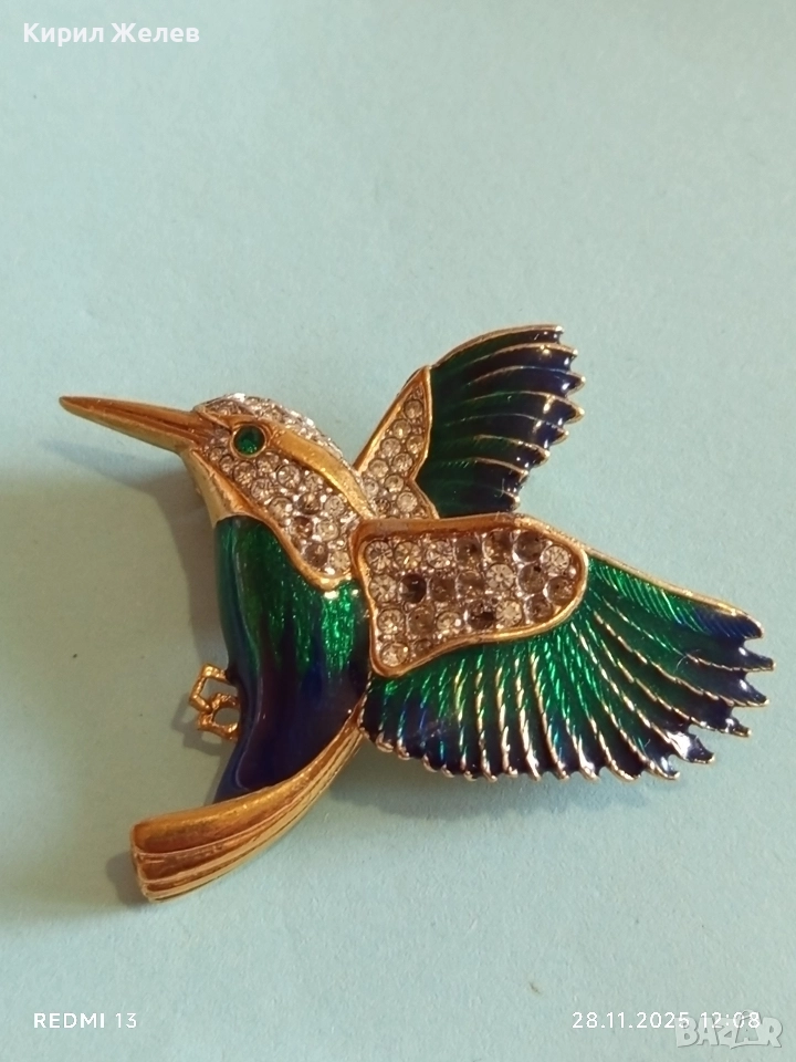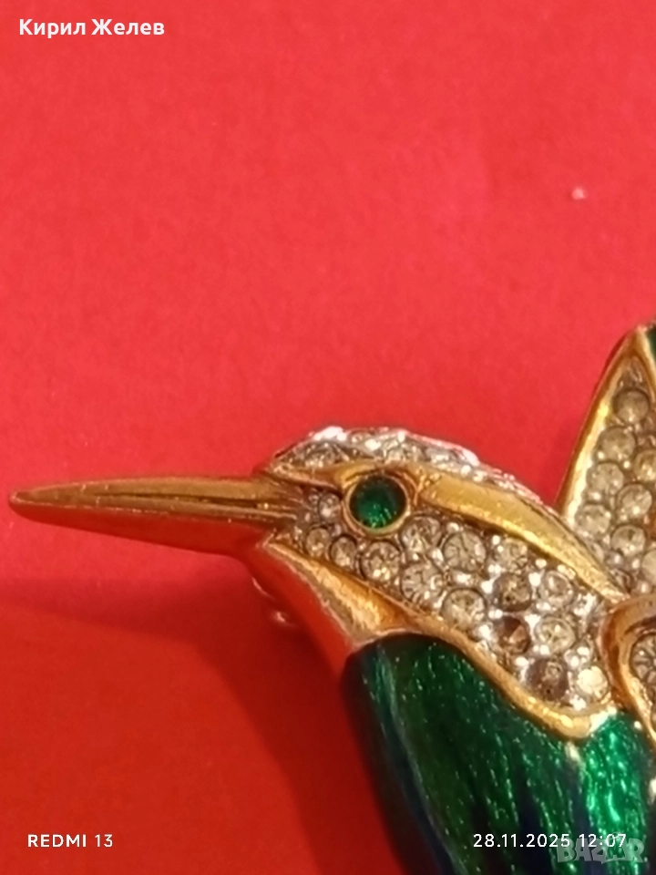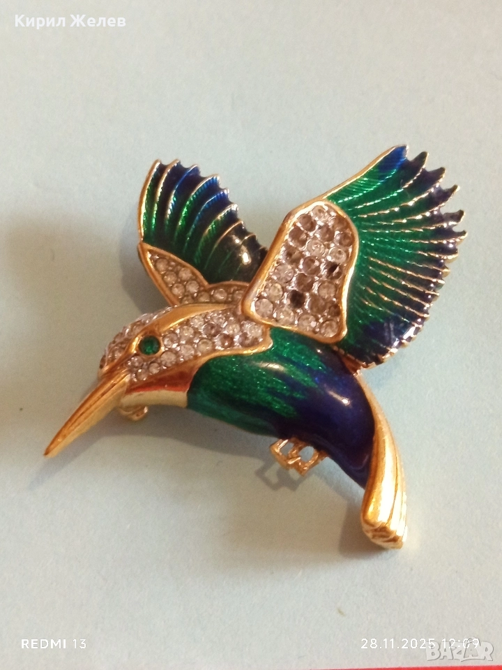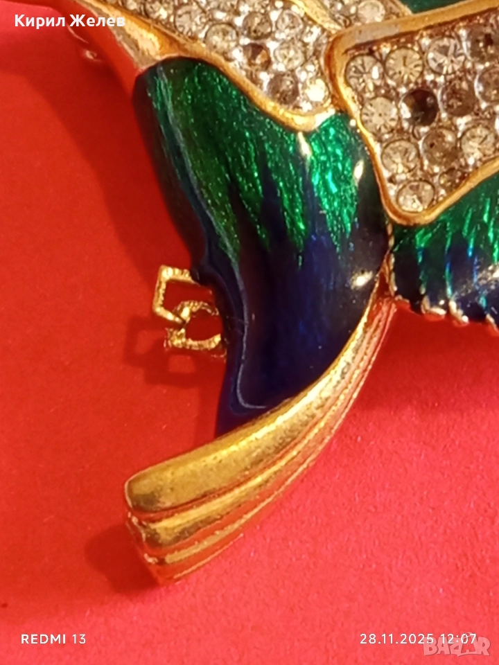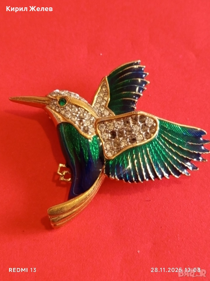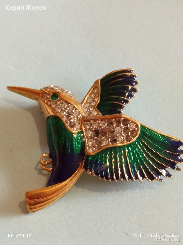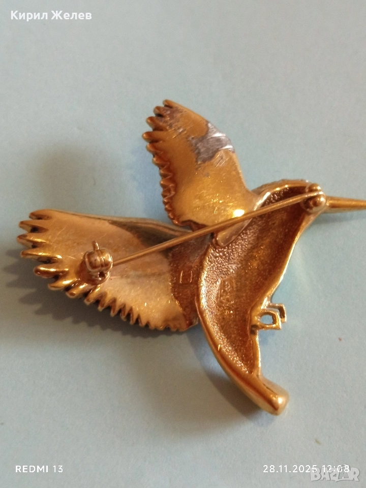 Винтидж брошка Колибри Attwood - Sawyer с 22 карата златно покритие Сваровски емайл 75081