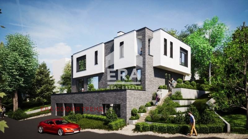 Представяме изключителен имот еднофамилна къща с впечатляваща архитектура, разгъната застроена площ от 560 кв.м и озеленен двор от 665 кв.м, разположена над Ботаническата градина, в престижната вилна зона Киноцентър Драгалевци, София. Сградата е проектирана и се изпълнява по виза за проектиране, в съответствие с всички нормативни изисквания, като се предвижда завършване през лятото на 2026 г. Зоната е с нискоетажно жилищно застрояване, което гарантира тишина, чист въздух и панорамни гледки към планината и града. Достъпът до имота е от улица Проф. Александър Райчев както автомобилен, така и пешеходен.