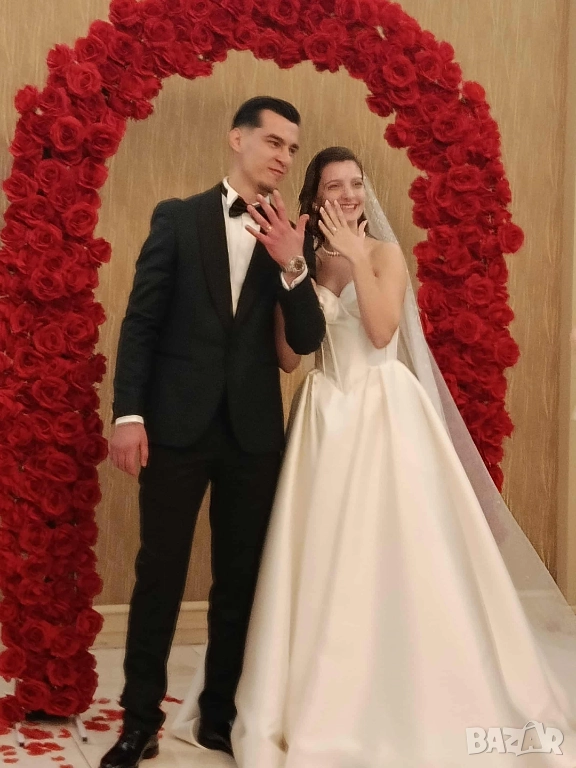 Бяла метална арка с изкуствени рози за сватба и друга декорация → Обява 52571979