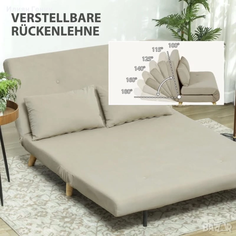 Разтегателен диван, Разтегателен диван, Диван, вкл. 2 възглавници, кадифен вид, 130 x 78 x 79 см, Бежов - 600.00лв.