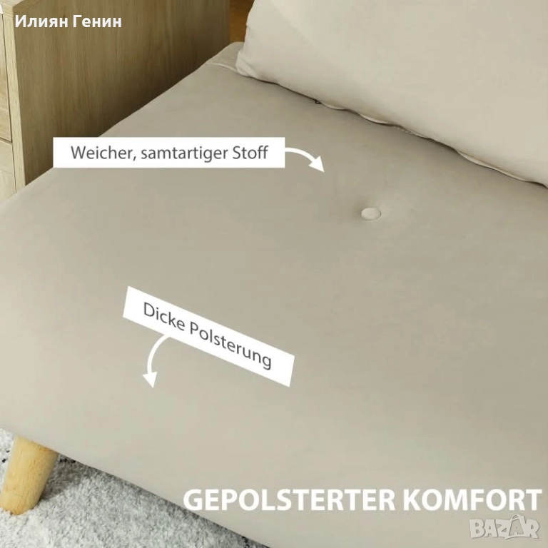 ✔ Разтегателният диван е с масивна стоманена рамка, дървени крака с гумени крачета и противоплъзгащи подложки за стабилност.
