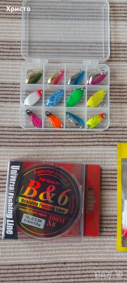 Нови примамки 12бр клатушки и силикони два пакета със 100м плетено влакно за 20лв общо! За поръчка ни пишете име тел и адрес на куриера еконт.