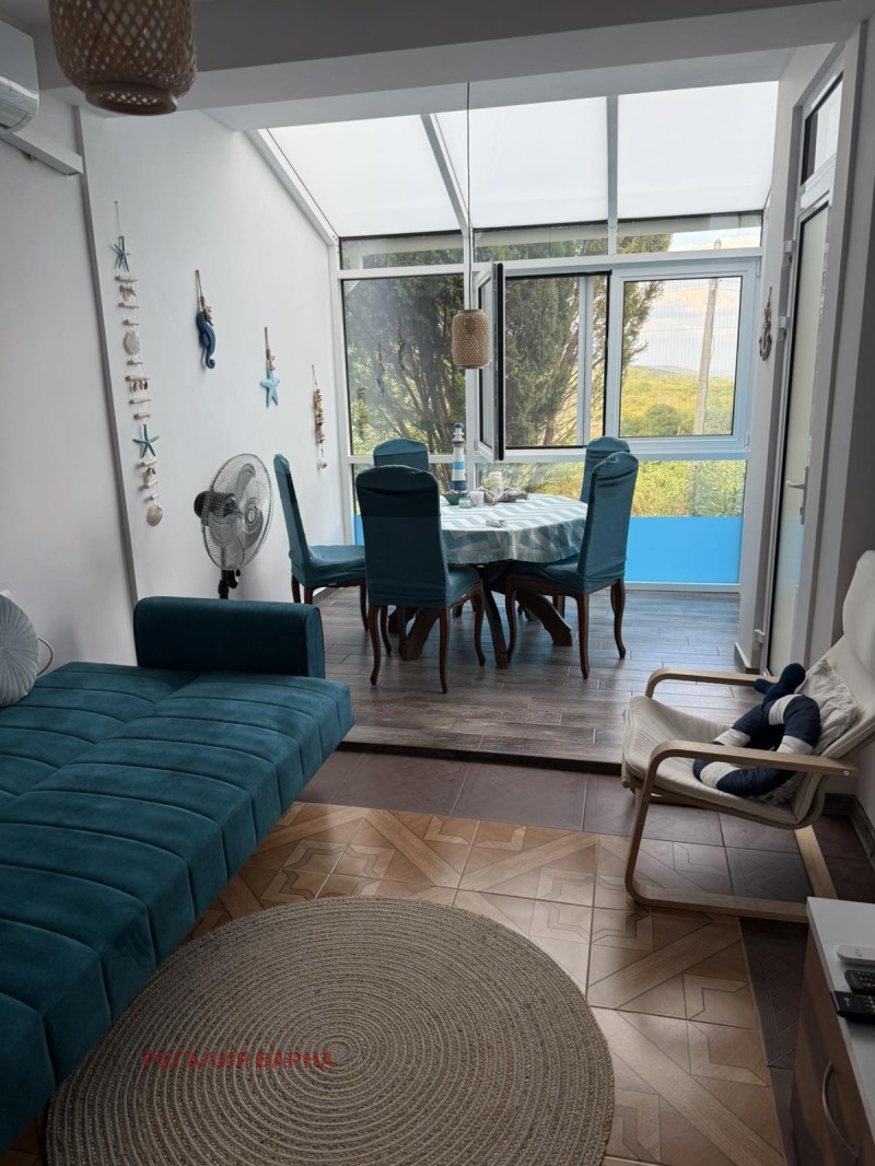 РЕГАЛИЯ ВАРНА предлага ЕКСКЛУЗИВНО разкошен инвестиционен имот. Готов, обзаведен с вкус, с МОРСКА панорама, тухлен на среден етаж АПАРТАМЕНТ (тип инвестиционно-ваканционен). Имота е без компромиси - голяма дневна с кухненска част с панорама море, прилежаща към нея тераса, две просторни спални, два санитарни възела - всичко това обзаведено с нови мебели, електроуреди и всичко необходимо за незабавно ползване и/или отдаване под наем. Към имота има 500 кв.м. земя, което позволява да се обособи и ползва индивидуален двор. 'Черешката на тортата' е, че имота е документално разделен на два Апартамента, което позволява с минимална инвестиция да се отдели единия и да се продаде или даде под наем самостоятелно ! Рядко инвестиционно предложение - а като бонус може да си посрещенете НОВА ГОДИНА там !