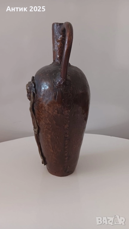 Изделието е в тъмнобронзов оттенък с естествена патина, подчертаваща неговата възраст.
