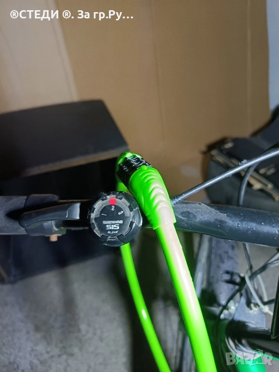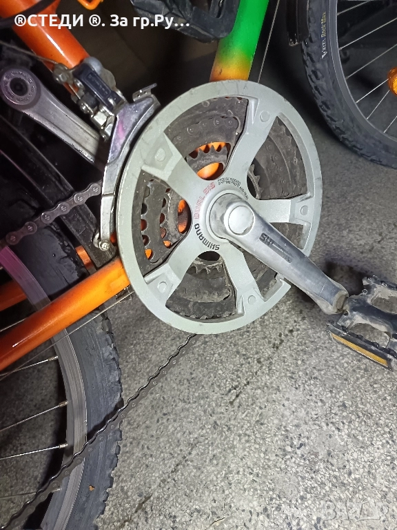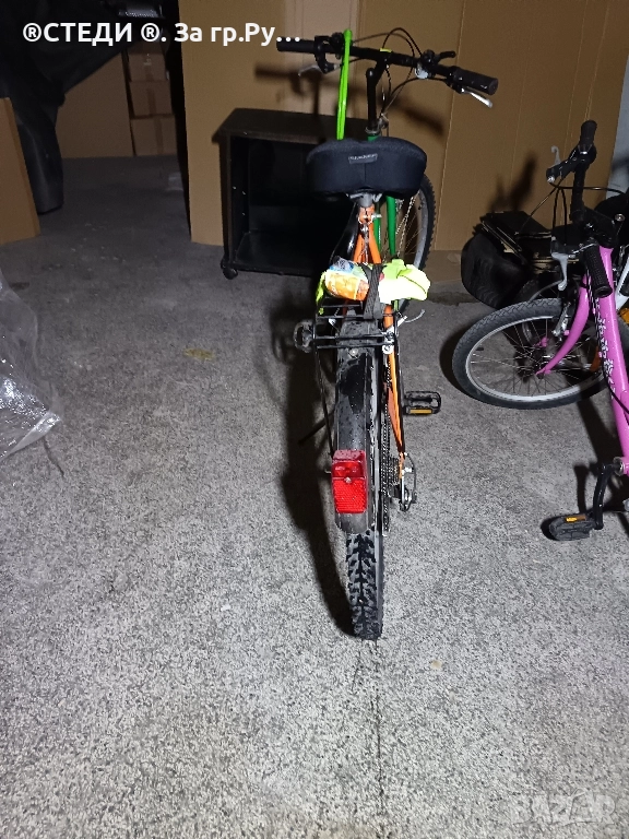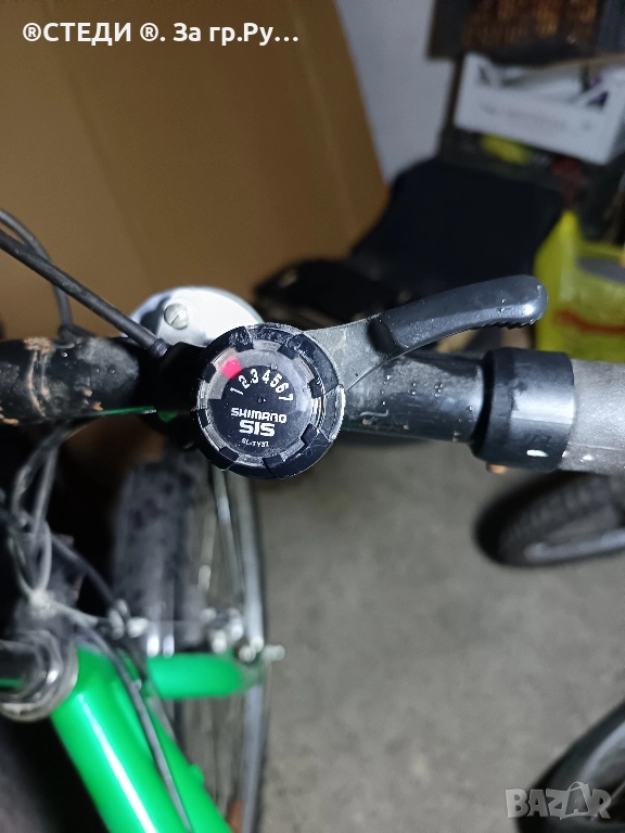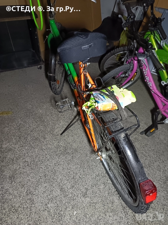 велосипеда е с алуминиеви капли, хубави гуми ,калници,багажник,степенка,стойка за бутилка за вода .палцови команди на скоростите. 21 скорости SHIMANO, предна и задна спирачка и мека седалка. Може да се движи,, без проблем.