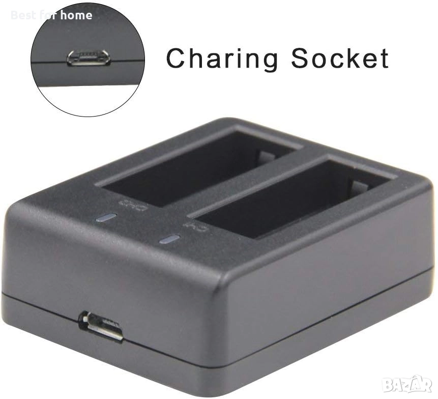 【Бързо зареждане】 Това зарядно устройство за екшън камера е удобно за едновременно зареждане на 2 батерии, спестявайки време за зареждане. ЧЕРВЕНАТА светлина на зарядното устройство показва, че батерията се зарежда, СИНЯТА светлина показва, че батерията е напълно заредена или не се зарежда.