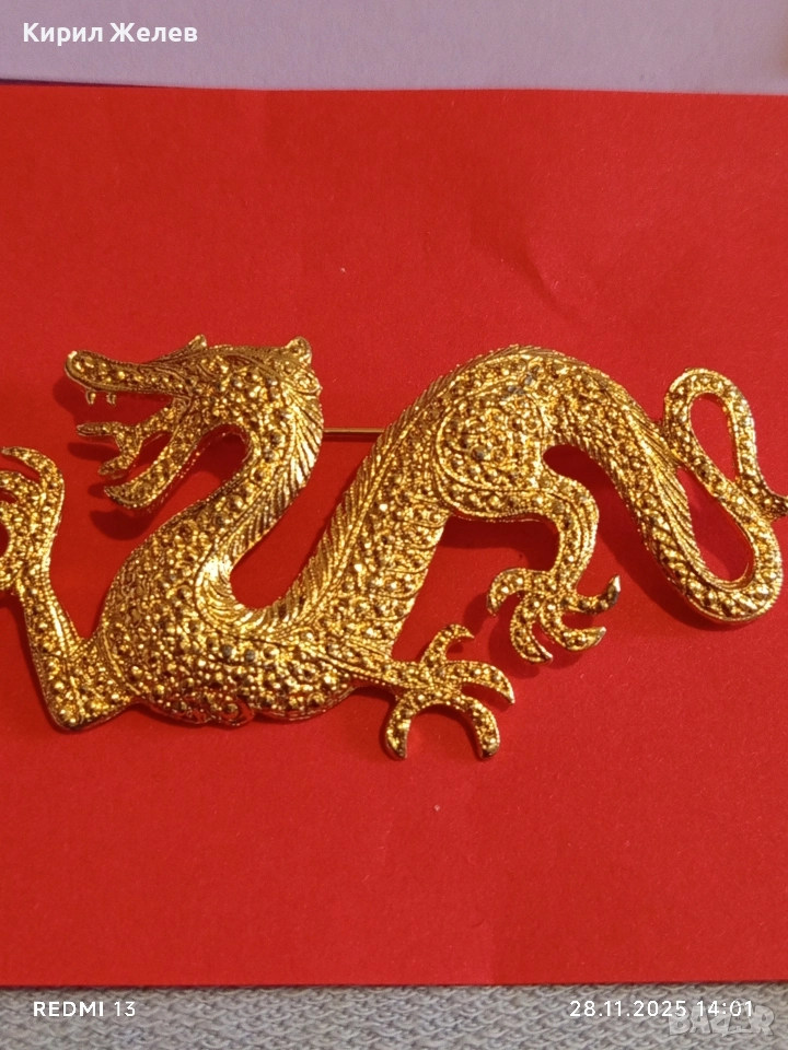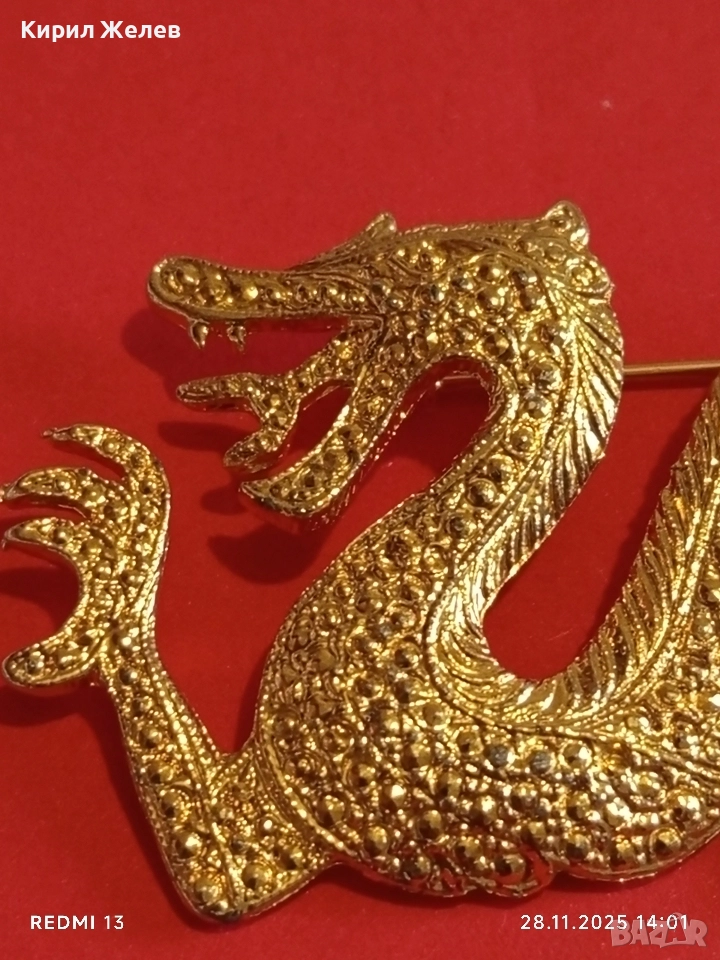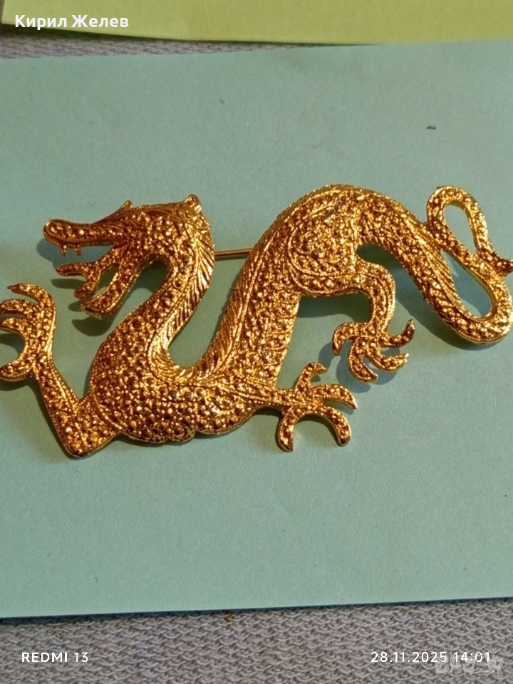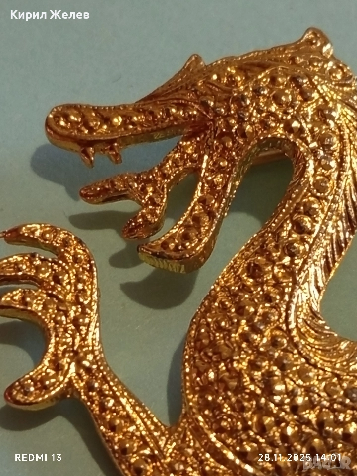 Позлатена текстурирана брошка с ДРАКОН винтидж 33557