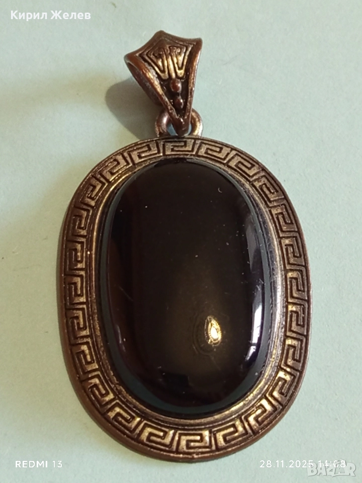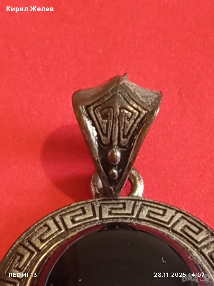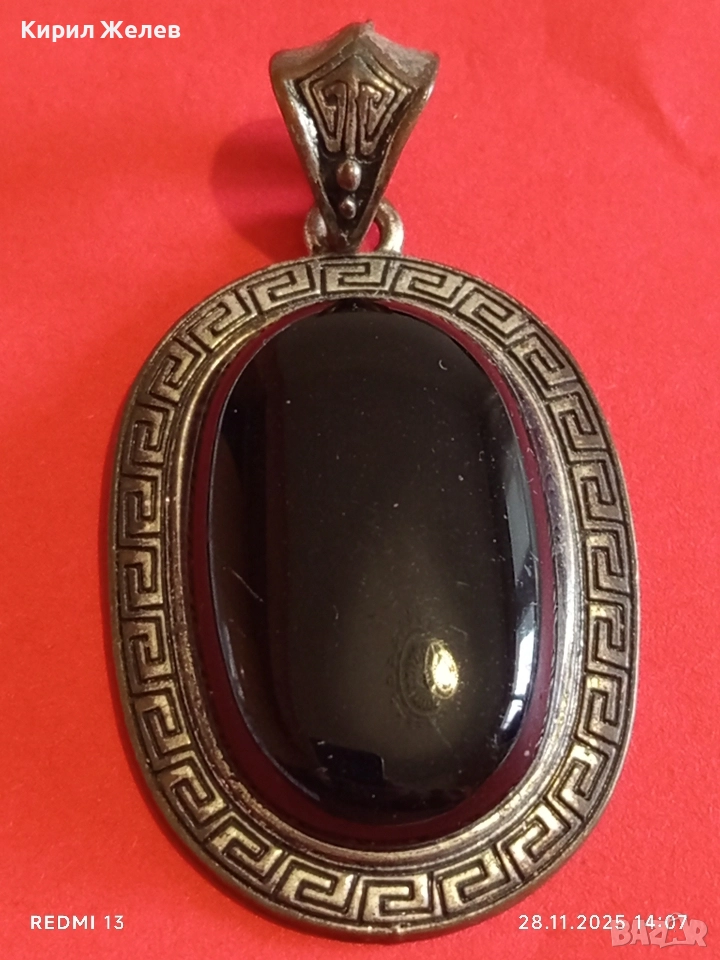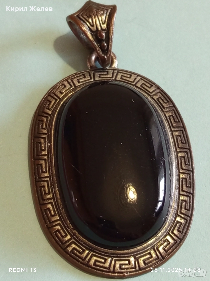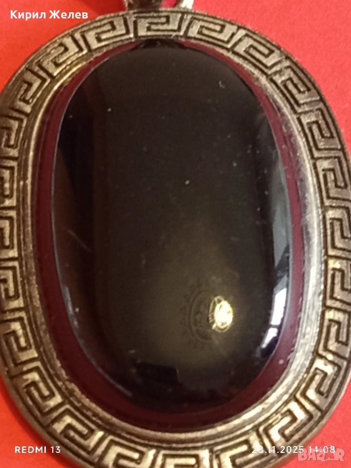 Медальон с голям полиран ЧЕРЕН ОНИКС рамкиран от декоративен Гръцки мотив 52253