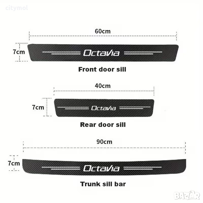 и 40х7 см. за праговете на задните врати, 90х7 см за прага за багажника