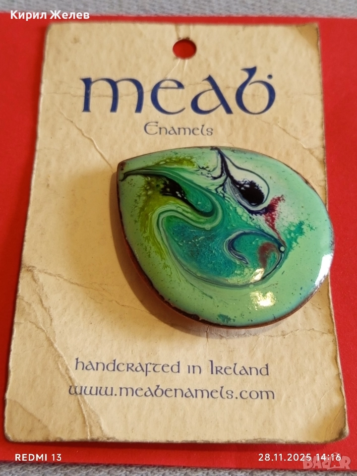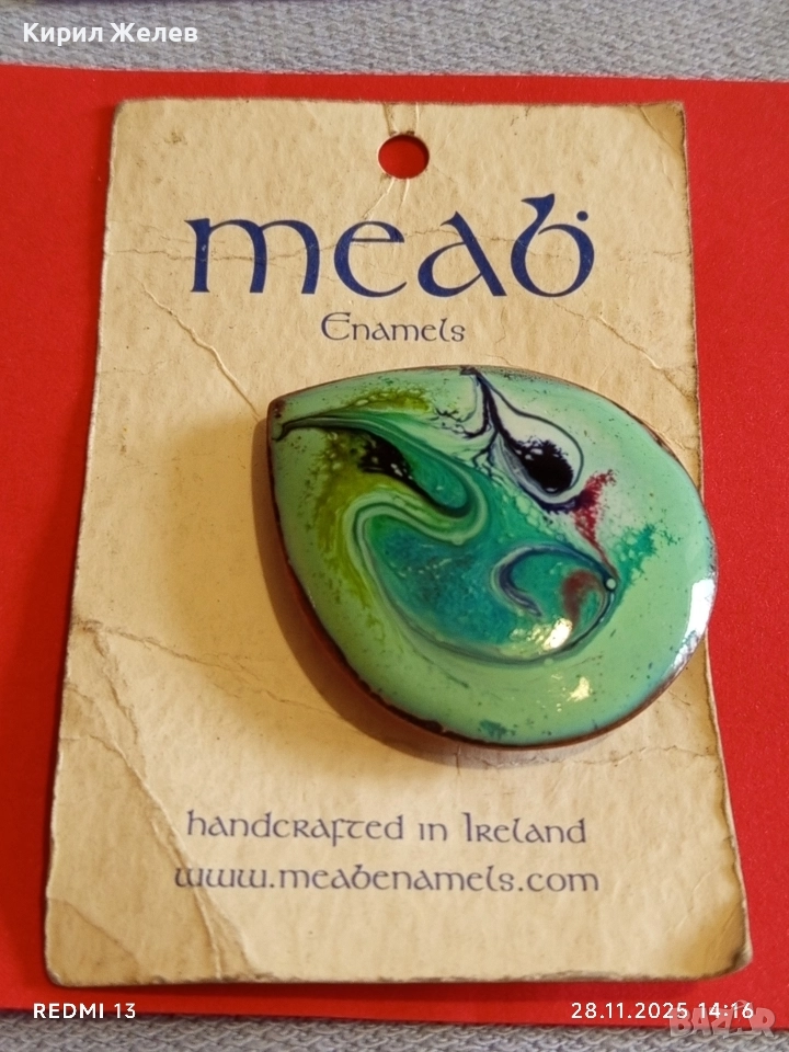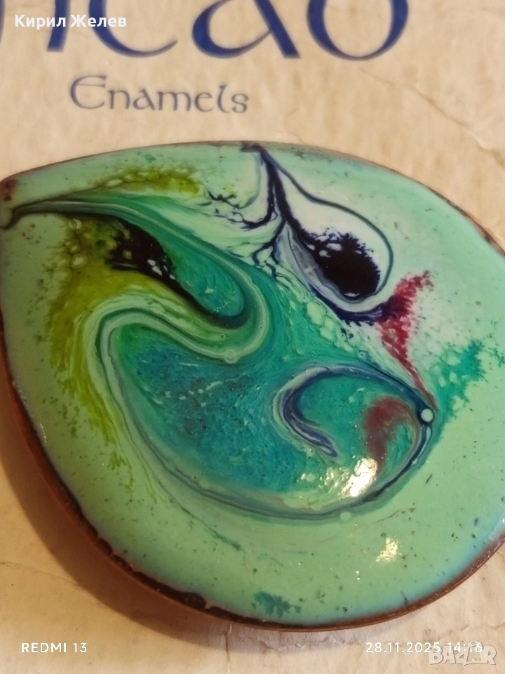 Ръчно изработена емайлирана брошка на Meab Enamels в абстрактен зелен цвят 49336