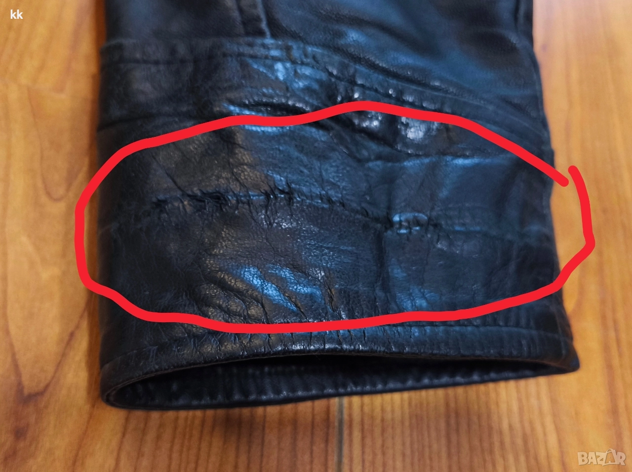 Напукано в основата на левия ръкав,отбелязано на снимка-4