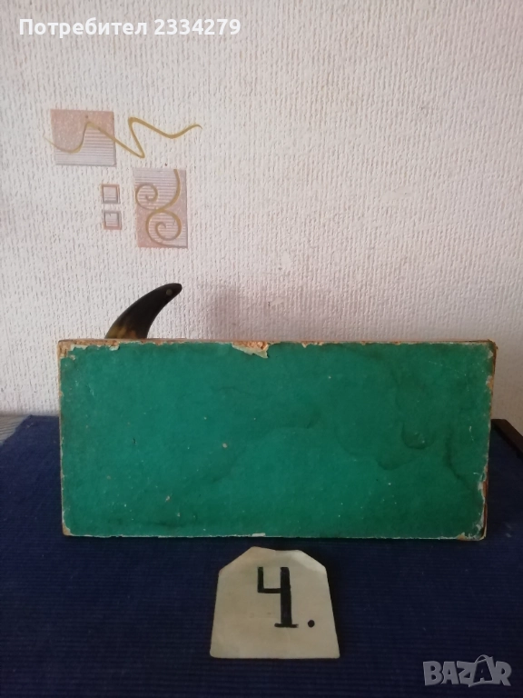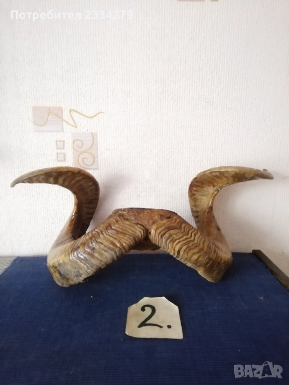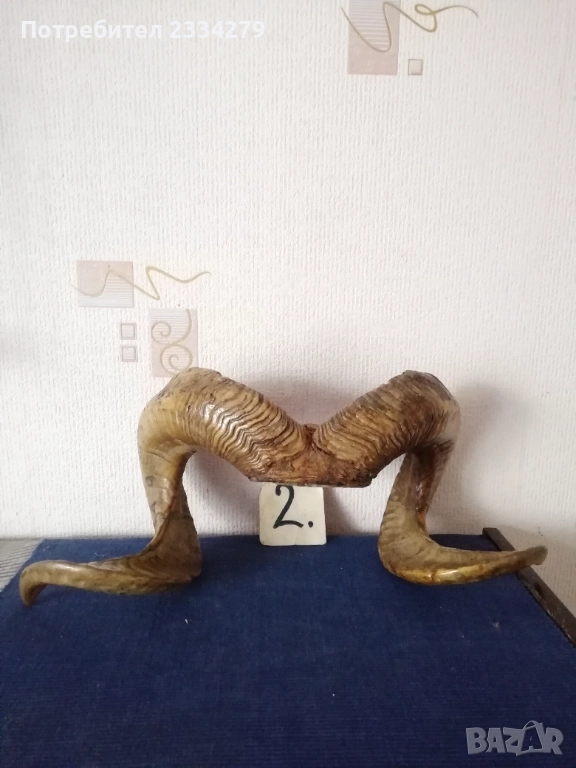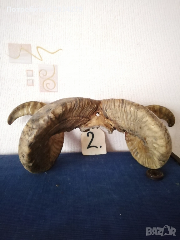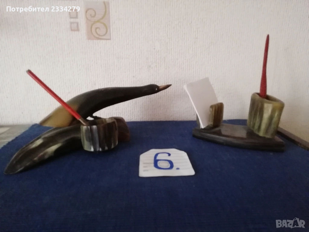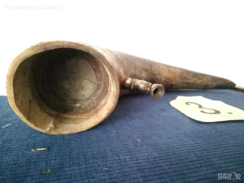 N:1 стар трофей на рога от бик, размери , цена 40€.; N:2 (ПРОДАДЕНИ) ; N:3 стара барутница от голям рог, размери , цена 15€; N'4 стара закачалка ръчно изработена от рога на бик, размери , цена 25€; N:5 стари чаши орнаментиран обков, размери , цена 17€. двете; N:6 (НЕ НАЛИЧНИ)