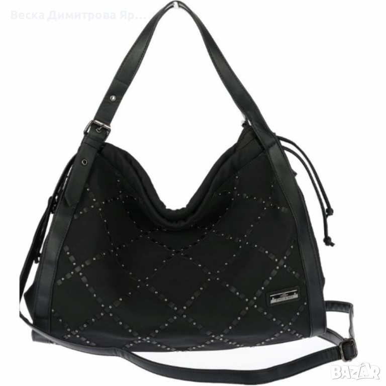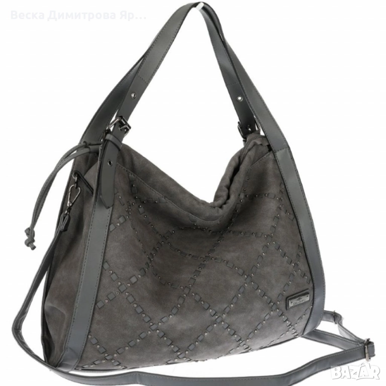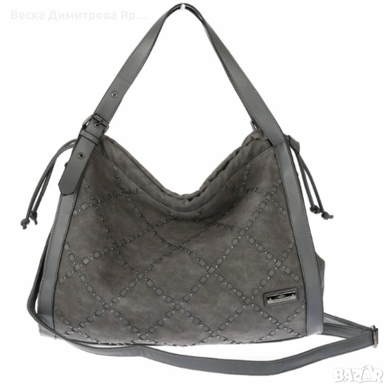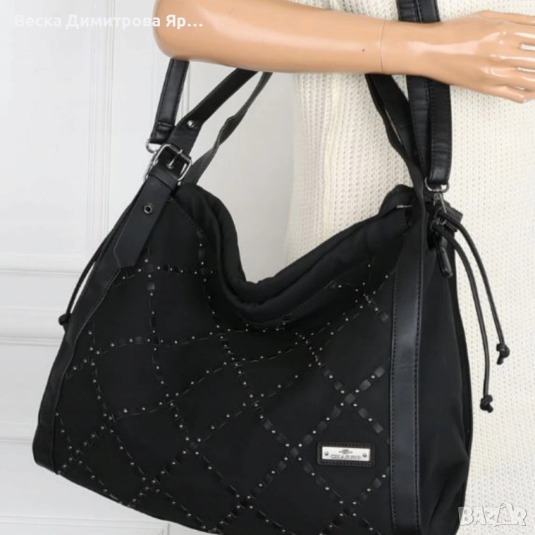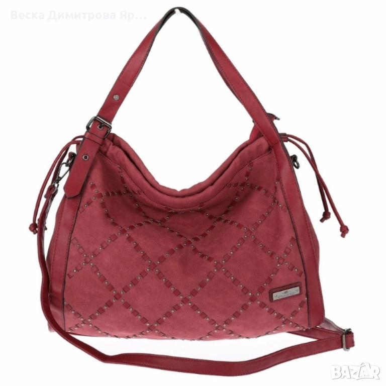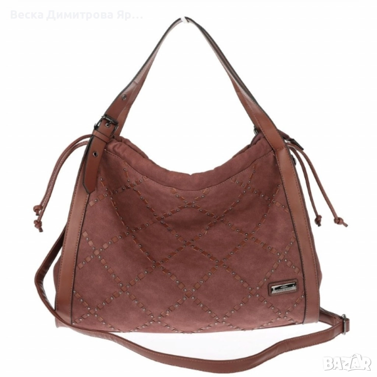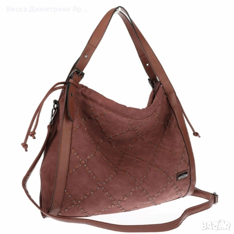 Велурена дамска чанта с декоративни ленти и метални капси – елегантен бохо дизайн → Обява 52574232