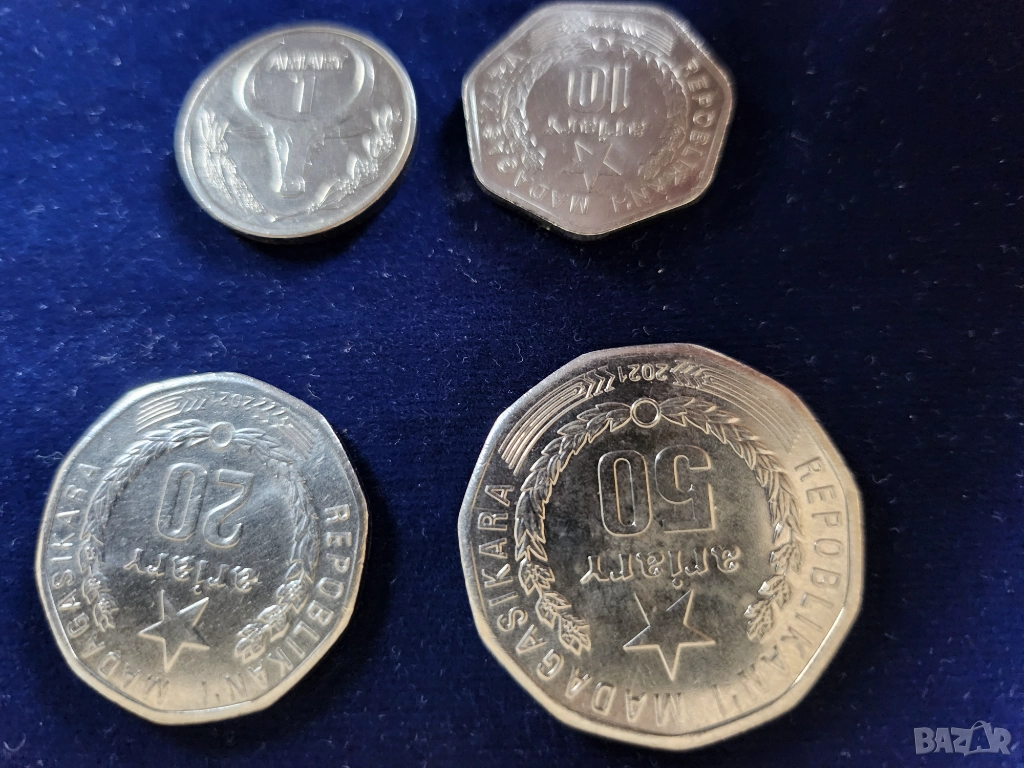 - с номинал: 50, 20 , 10 и 1 ариари. Цена: 5 € за 1 ариари, останалите х 2,50 €/монета. Ново състояние