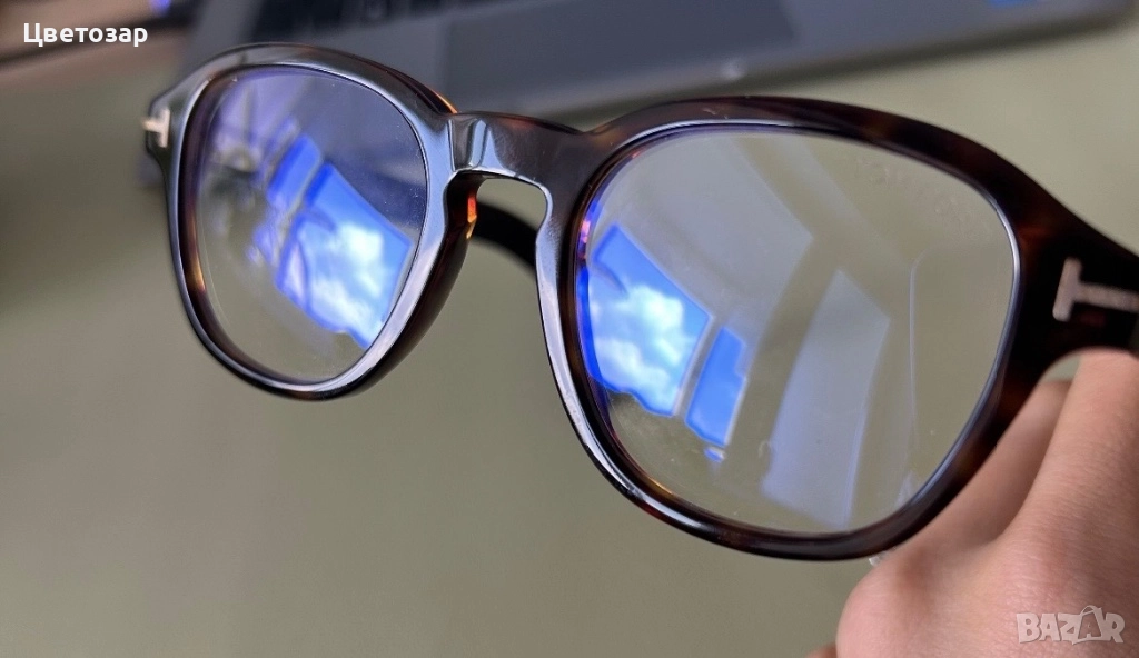 Tom Ford предлага стилни очила за компютър без диоптер. Използвани са много малко, като нови са и подходящи за всеки, който търси комфорт и стил за работа пред екрана. Очилата са купени на жена, но са унисекс и прилягат на всички. Купувани са от оптика Леонардо.