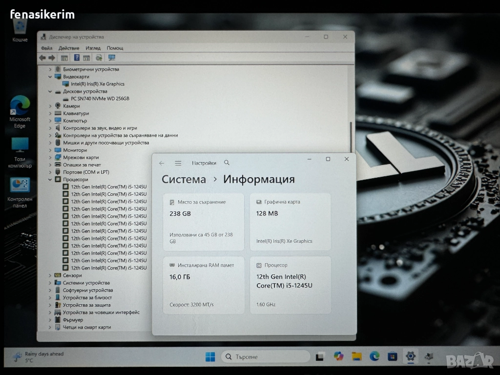 Лаптопа е в отлично визуално състояние и е в безупречна техническа кондиция. В комплект с оригиналното зарядно у-во. Батерията кара до 8 часа. Инсталиран Windows 11 Pro - оригинален и лицензиран, закупен заедно с лаптопа.