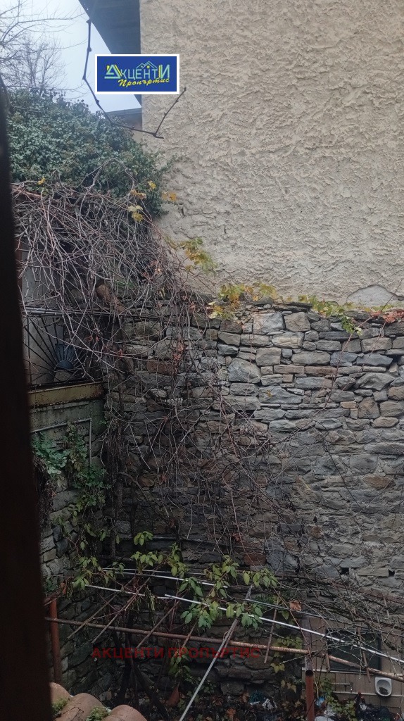 Агенция за недвижими имоти Акценти Пропъртис Ви предлагаме уникален имот в гр.В.Търново. Имотът се намира на около триста метра от хотел Янтра и Самоводската чаршия, граничи с две улици и е с лесен целогодишен достъп. Имотът е с хубава панорамна гледка към Трапезица, Царевец, Арбанаси... Къщата в миналото е била 'Хан' и има възможност за реставрация. Конструкцията е гредоред/камък,тухла,гредоред/. Етажите са с площ от 139км.м. Първият етаж включва хол, стая, баня и тоалетна. Вътрешна стълба води към вторият етаж. Той се състои от шест стаи, баня, тоалетна и коридор.Стаите са просторни и високи.Има допълнителна постройка, два каменни дувара и два тунела- дълги шест, седем метра.Имотът е с право на строеж,10м. височина.Парцелът е 250 кв.м., покрива е ремонтиран основно през 2008г. Към къщата има гараж и възможност да се паркират в двора 2 автомобила.Подходяща е за инвестиция, с потенциал за преустройство в къща за гости, хотел....Номер на офертата 281125.