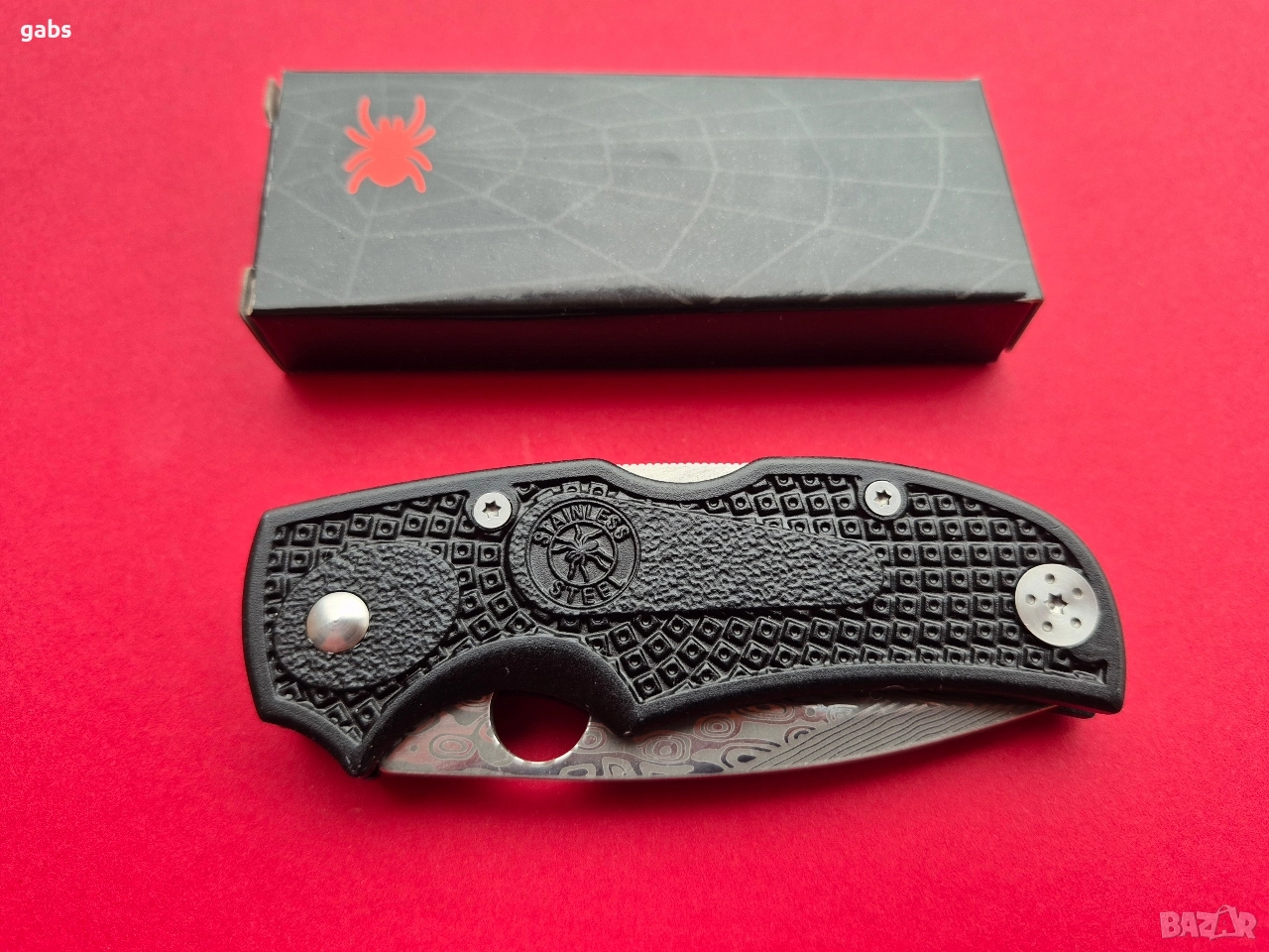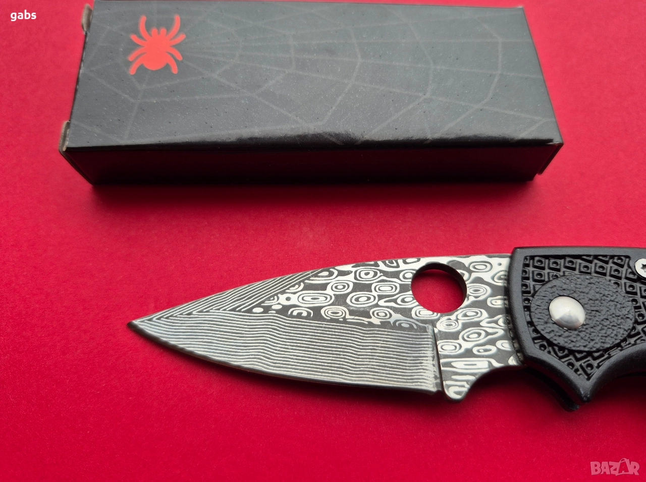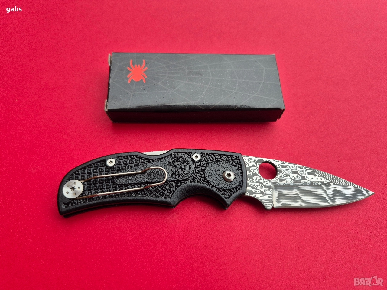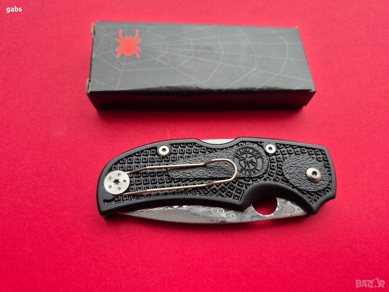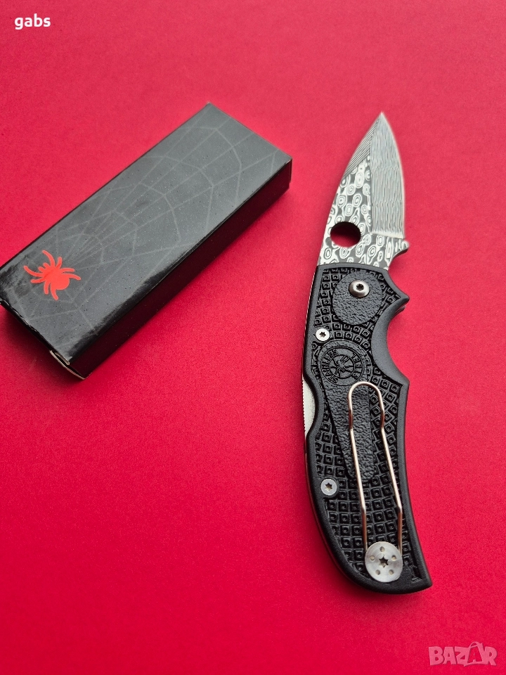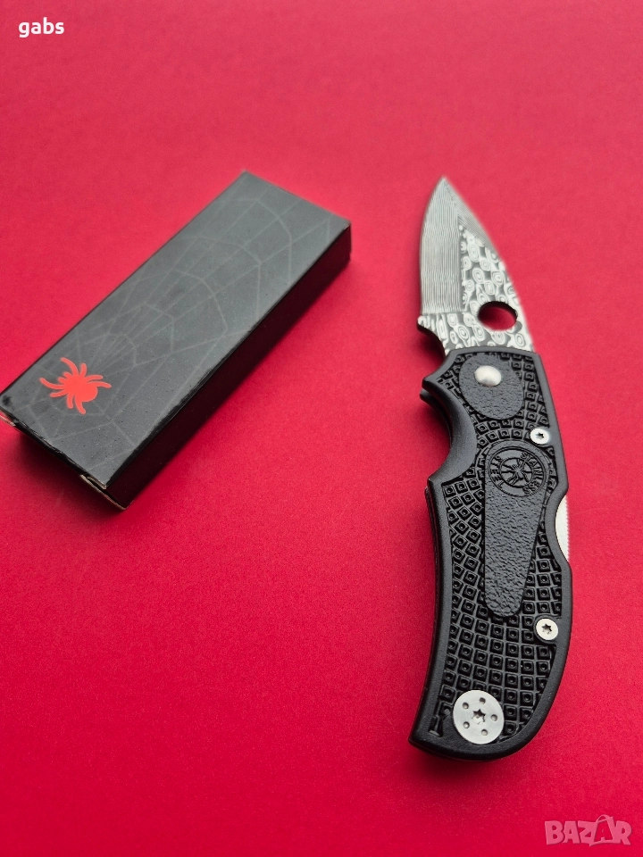 Сгъваем джобен нож SPIDER,с уникална шарка на острието и клипс за колан.
