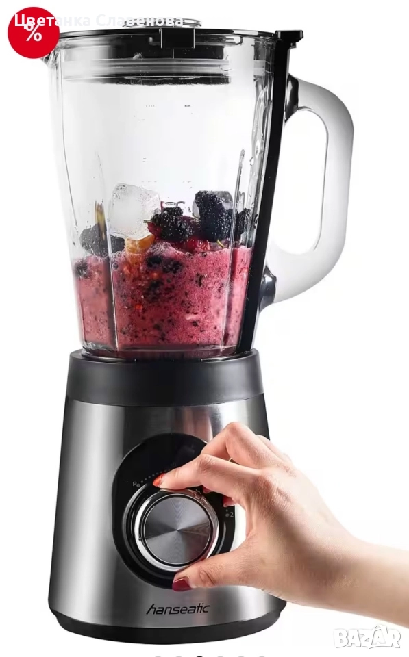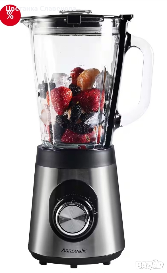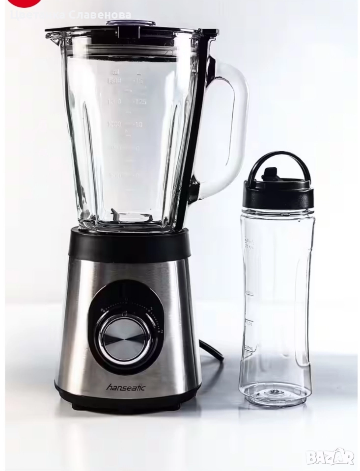 Блендер Hanseatic стъклена кана 1.5 л , 800W +бутилка за напитки 500мл.
