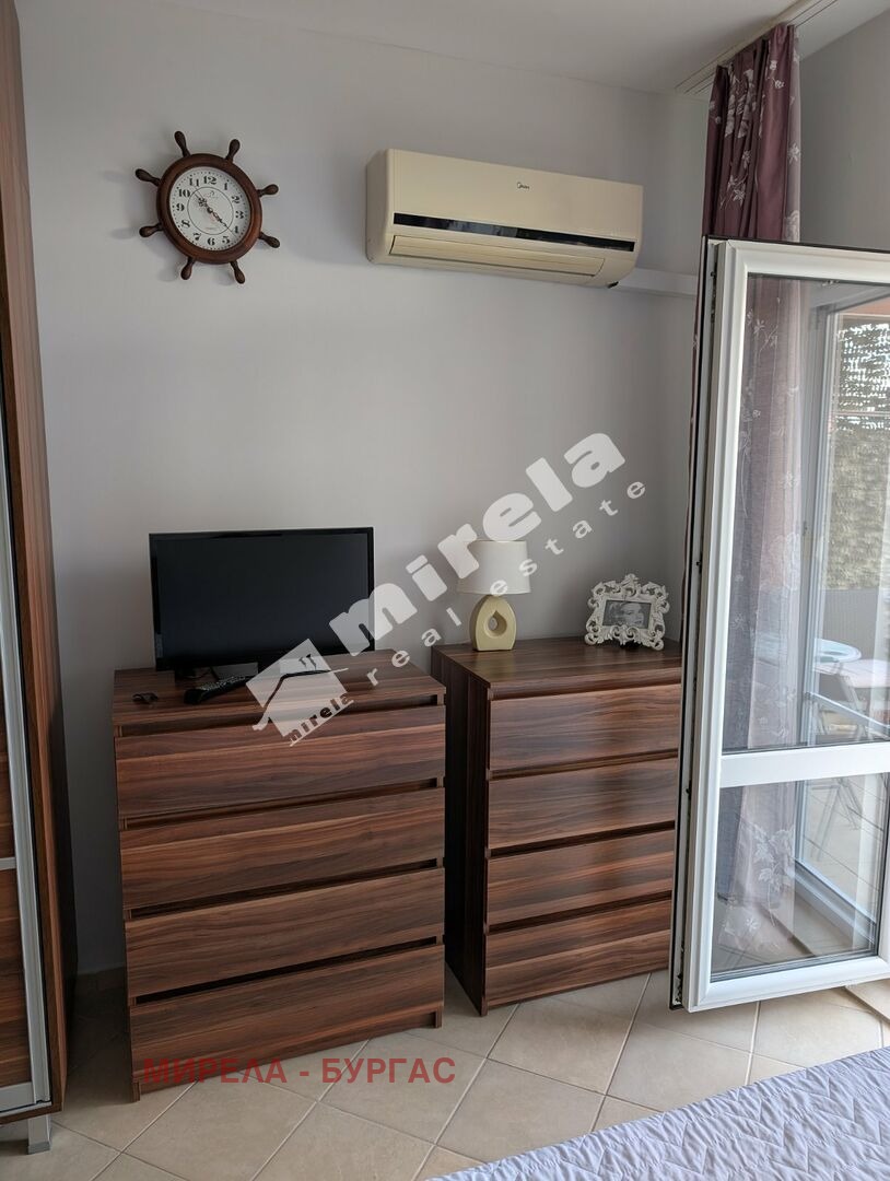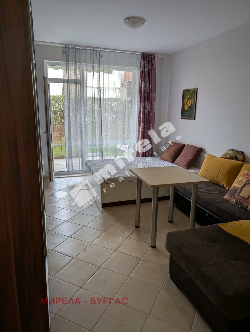 Студиото е на партерен етаж, със североизточно изложение. Разполага с малко дворче с тревна площ. Имотът има акт 16. На разположение са поркоместа. В сградата има постоянно живеещи , което го прави напълно подходящо за живеене целогодишно. Предлага се във вида показан на снимките заедно с мебелите и техниката. Отлична инвестиция и при отдаване под наем през летния сезон.