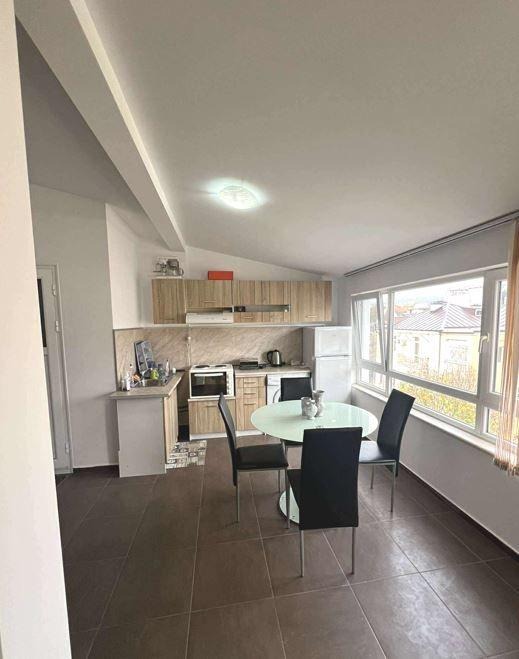 Имотът е ситуиран на 4-ти етаж и разполага с площ от 45 кв.м разгърнати в следното разпределение: еднопространствено помещение със спалня, кухня, баня с тоалетна, тераса