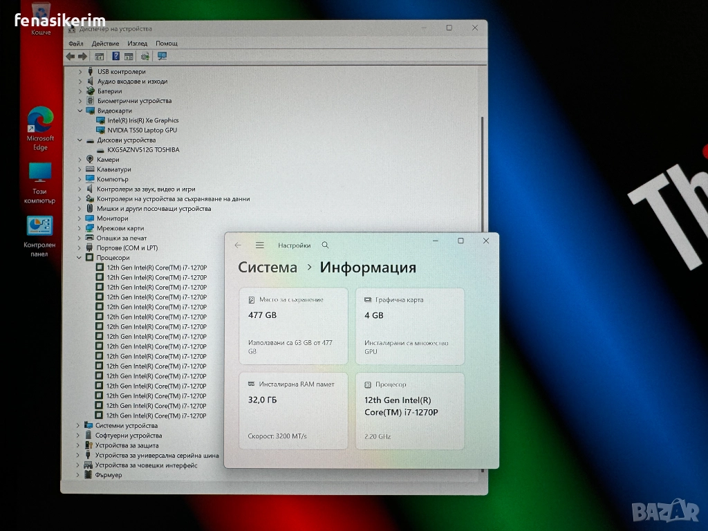 2 видеокарти : Nvidia T550 4GB DDR6 собствена памет + Intel Iris Xe Video - up to 20 GB Total Graphics memory.