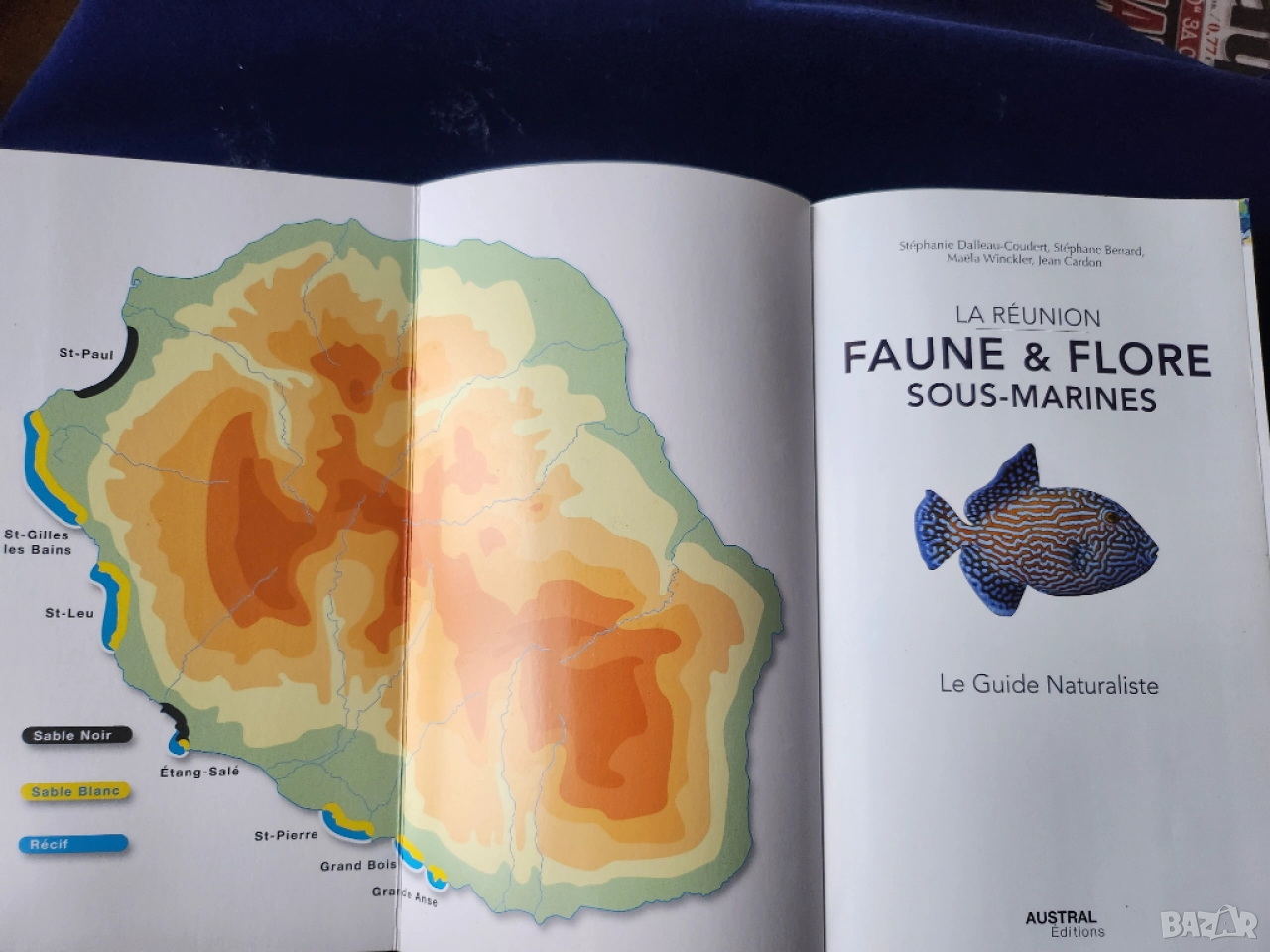 Флора и фауна в морето на Реюнион - на френски, описани 600 вида(вкл.300 вида риби), 800 цветни фото