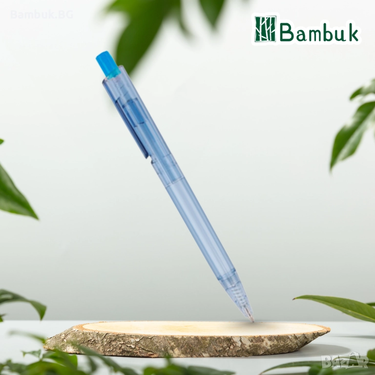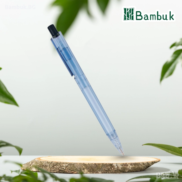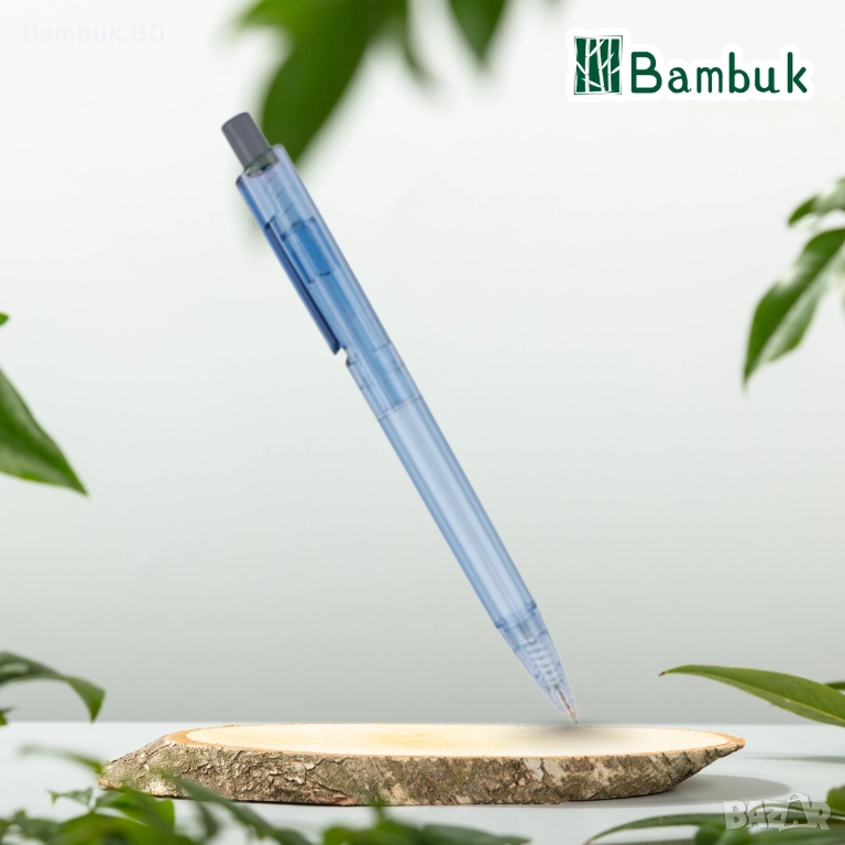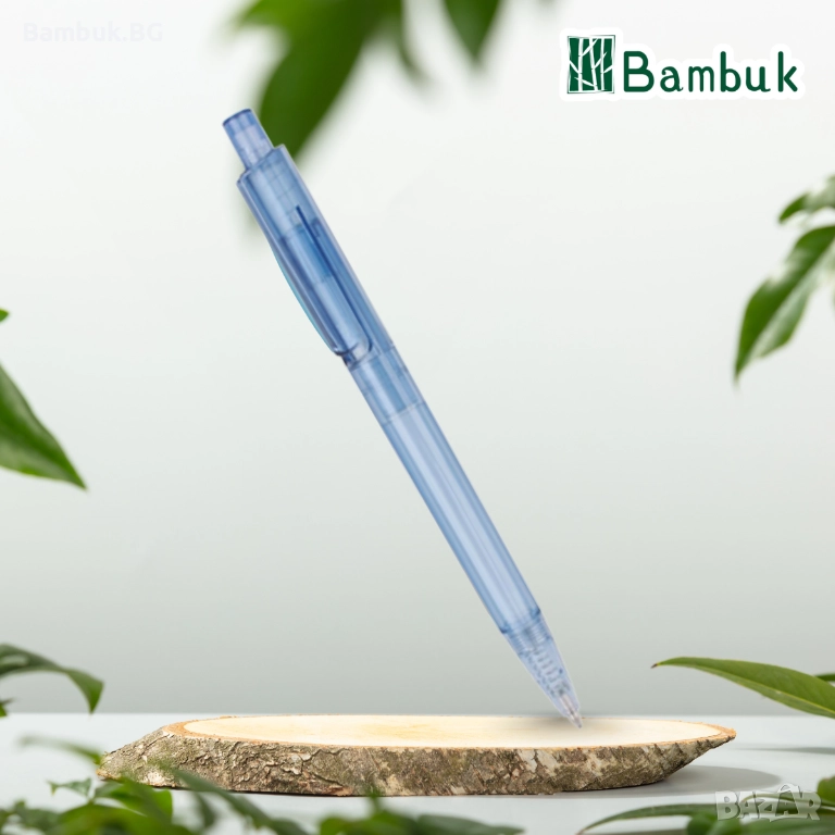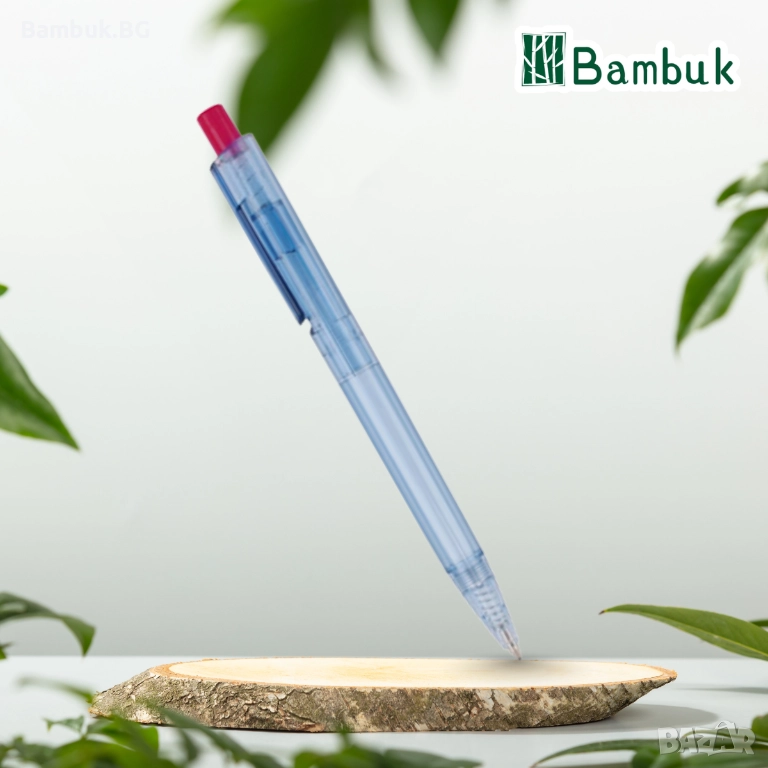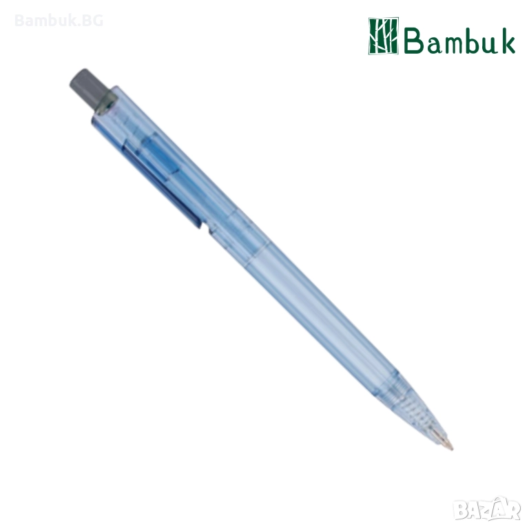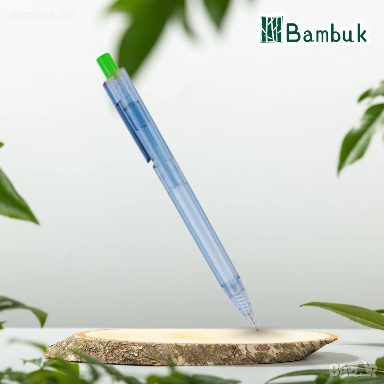 Химикалката е изработена изцяло от рециклирани пластмасови бутилки и е подходяща за учащи и офис цели.