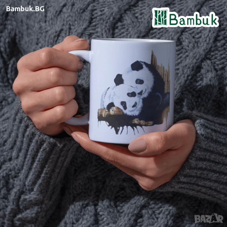 Част от серията ,,С любов към пандите”, тази чаша изпълнява няколко цели, а именно да те усмихне, да стане твой неизменен спътник в сутрешния ритуал по събуждане, както и да е в хармония с природата и този рядък животински вид чрез еко опаковката си. Тя е подходяща и за двойки, които обичат да споделят дълги уикенди в гушкане, също както пандите от чашата.