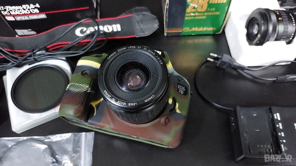 Canon EOS 7D с 3 обектива, 32GB Memory Card, Battery Grip, Lensball, Протектор, Ulanzi MT-65 Video Tripod, K&F Concept Slim Fader ND 72mm MAX, hama UV72 Filter и Раница.