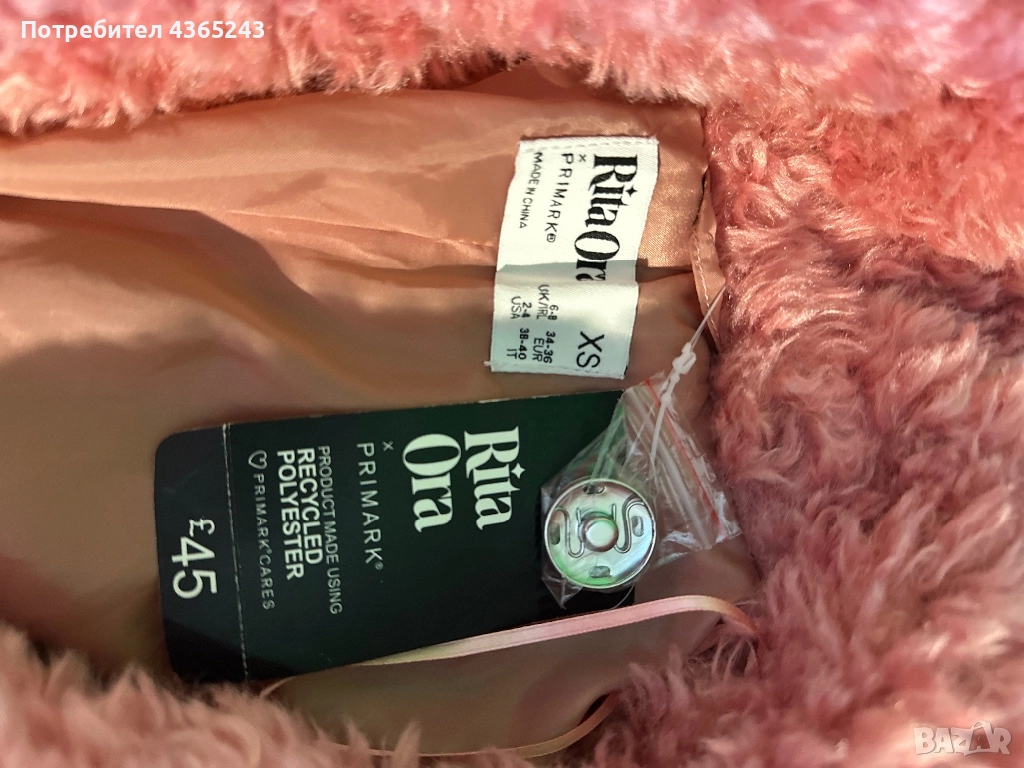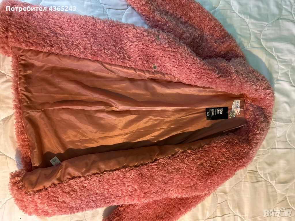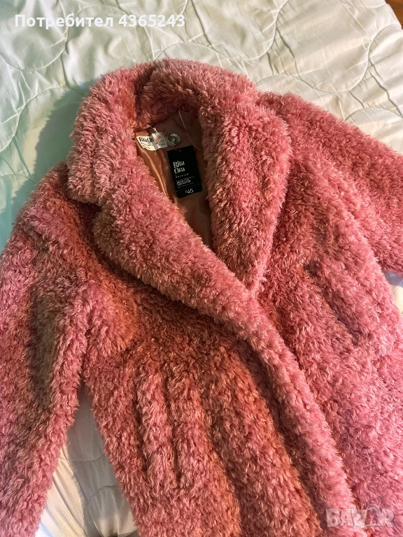 Дамско розово пухено палто НОВО С Етикет! Размер XS → Обява 52576961