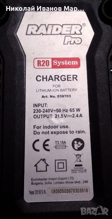 Зарядно устройство Raider pro 20v 2.4аh → Обява 52577018