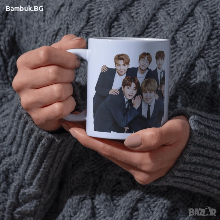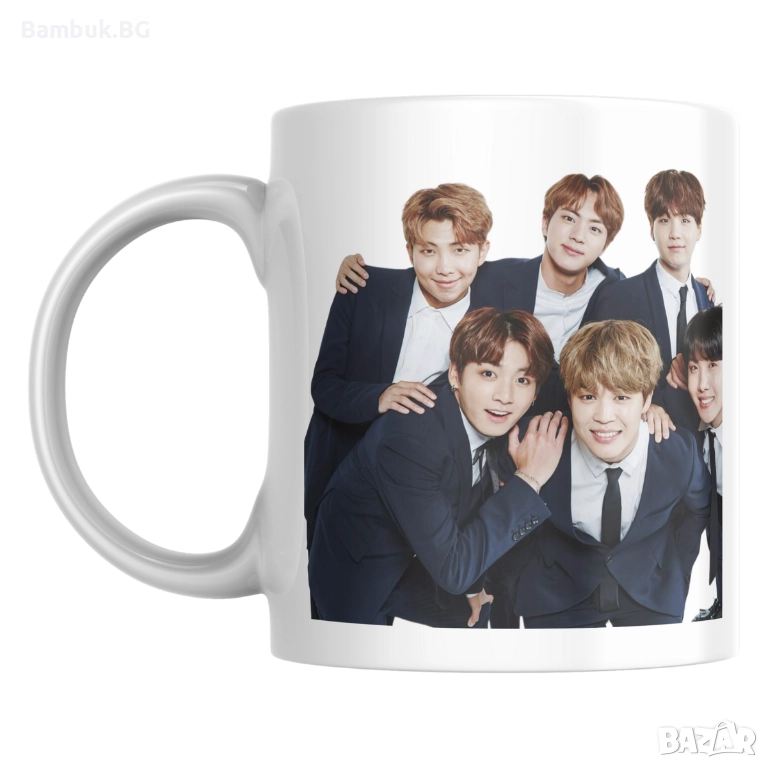 Можеш ли да си представиш нещо по-сладурско от любимите ти BTS момчета, облечени в костюми?! Сега можеш да ги имаш на бюрото си с тази бутикова чаша!