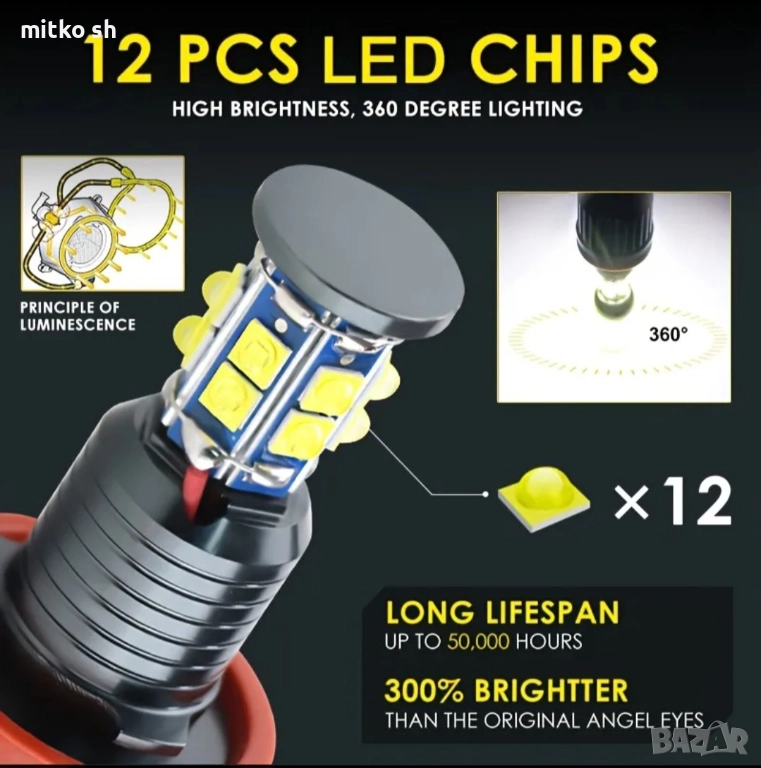 H8 Led ангелски очи автомобилни крушки → Обява 52577068