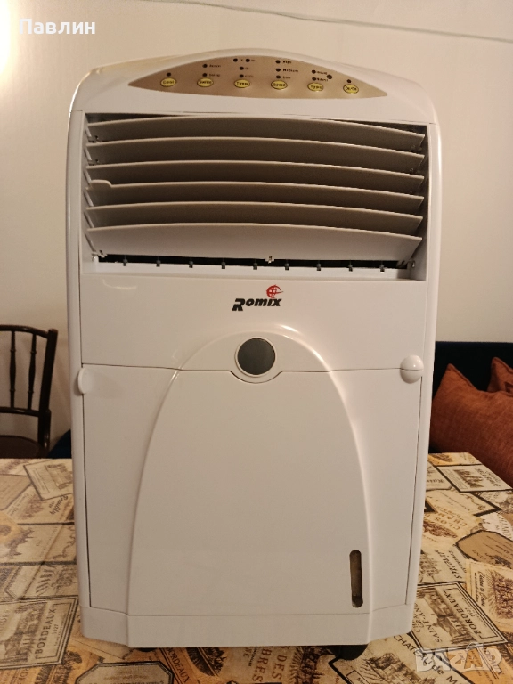 Продавам отлично запазен мобилен охладител/климатик тип "air cooler". Уредът е подходящ за охлаждане на дома или офиса, икономичен и лесен за преместване благодарение на вградените колелца.