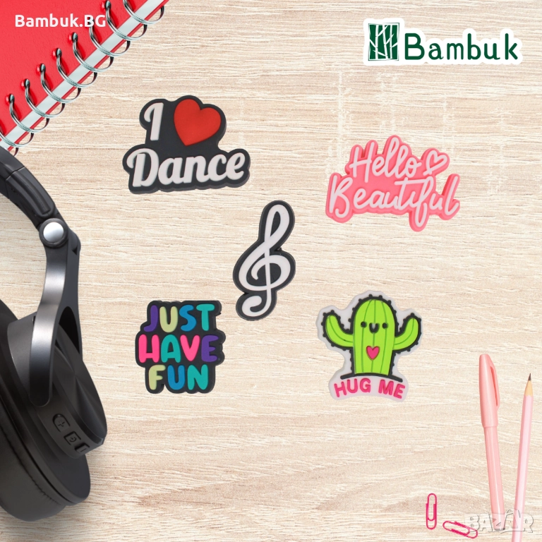 Чармове „Have Fun & Stay Cute“ 🎀🌈 – цветен и позитивен комплект, носещ настроение, усмивки и сладост! Идеални за несесери, чанти и обувки или като подарък за приятел.