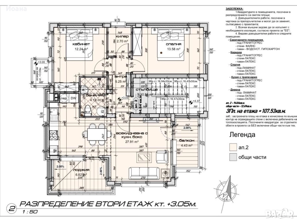 В същата сграда предлагаме и апартамент на втори етаж С ПАНОРАМНА ГЛЕДКА МОРЕ + 2 паркоместа в цената - цена 200 000 евро без ДДС